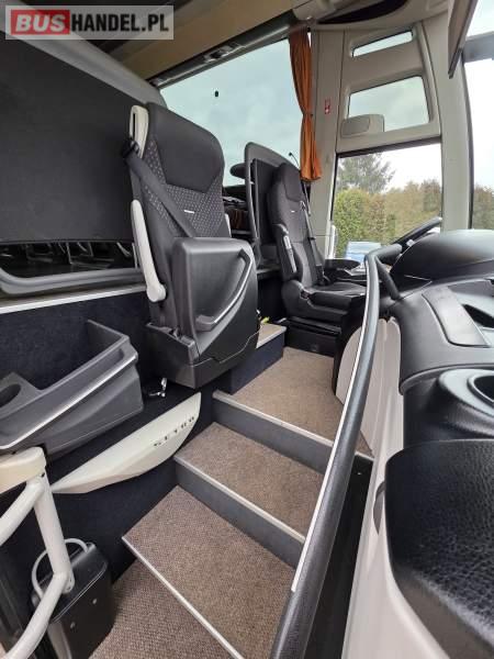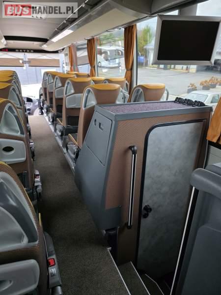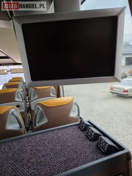 : klimatyzacja, WC, lodówka, caffebar, oświetlenie indywidualne, nawiewy dyszowe, podnóżki, stoliczki, siateczki, ABS, ASR, tempomat, retarder, mikrofon, radio, fotele odchylane i rozsuwane, sejf, regulacja wysokości nadwozia, centralny zamek, podwójne szyby boczne, wspomaganie kierownicy, elektryczne lusterka, ogrzewanie stacjonarne, DVD, ESP