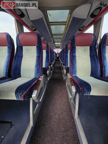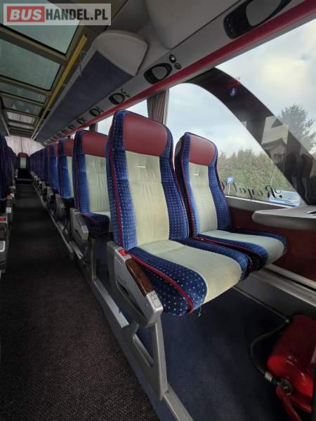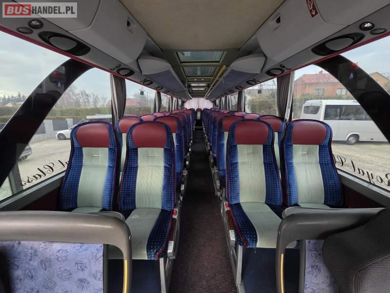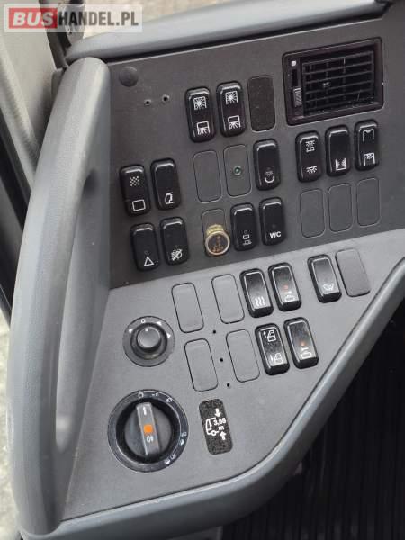 : WC, lodówka, caffebar, kabina sypialna, oświetlenie indywidualne, nawiewy dyszowe, siateczki, ABS, ASR, tempomat, retarder, podnóżki, stoliczki, mikrofon, klimatyzacja, radio, sejf, regulacja wysokości nadwozia, centralny zamek, podwójne szyby boczne, wspomaganie kierownicy, elektryczne lusterka, fotele odchylane i rozsuwane, DVD, ogrzewanie stacjonarne, ESP