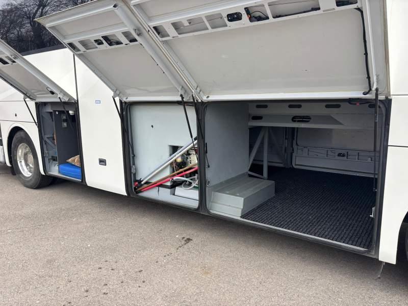 : klimatyzacja, WC, lodówka, caffebar, kabina sypialna, oświetlenie indywidualne, nawiewy dyszowe, podnóżki, stoliczki, siateczki, ABS, ASR, tempomat, retarder, nawigacja, CD, mikrofon, radio, fotele odchylane i rozsuwane, sejf, regulacja wysokości nadwozia, centralny zamek, podwójne szyby boczne, wspomaganie kierownicy, aluminiowe felgi, elektryczne lusterka, ogrzewanie stacjonarne, DVD, ESP