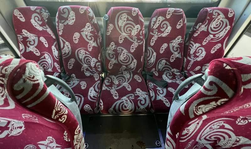 : video, WC, lodówka, oświetlenie indywidualne, ABS, ASR, tempomat, telefon, nawigacja, CD, podnóżki, stoliczki, mikrofon, klimatyzacja, radio, sejf, centralny zamek, podwójne szyby boczne, wspomaganie kierownicy, elektryczne lusterka, aluminiowe felgi, fotele odchylane i rozsuwane, DVD, ESP