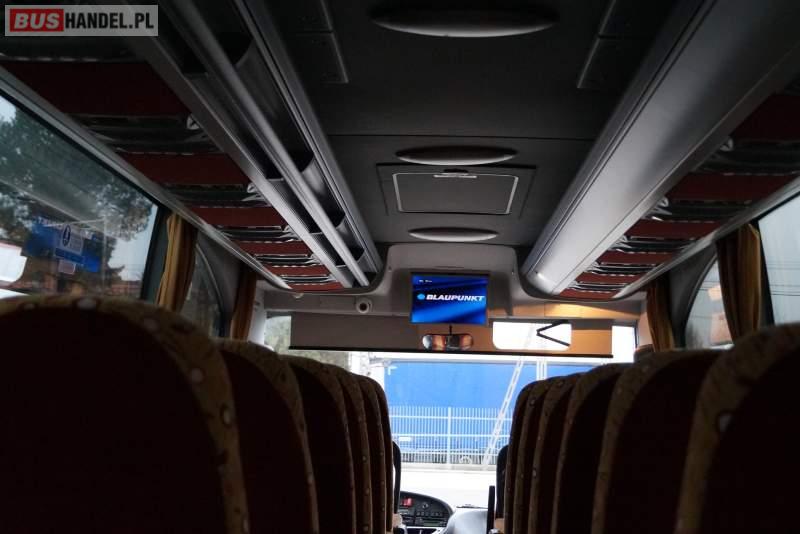 : klimatyzacja, oświetlenie indywidualne, nawiewy dyszowe, fotele odchylane, ABS, ASR, retarder, CD, mikrofon, radio, regulacja wysokości nadwozia, centralny zamek, podwójne szyby boczne, wspomaganie kierownicy, elektryczne lusterka, ogrzewanie stacjonarne, DVD