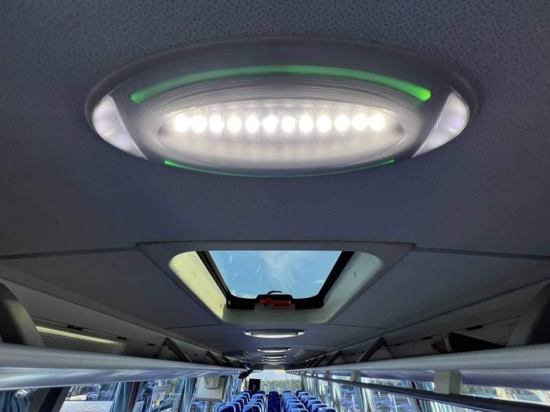 : klimatyzacja, video, lodówka, caffebar, oświetlenie indywidualne, fotele odchylane, podnóżki, stoliczki, ABS, ASR, tempomat, telefon, nawigacja, CD, mikrofon, radio, fotele odchylane i rozsuwane, rampa dla inwalidów, sejf, regulacja wysokości nadwozia, centralny zamek, podwójne szyby boczne, wspomaganie kierownicy, aluminiowe felgi, elektryczne lusterka, ogrzewanie stacjonarne, DVD, ESP