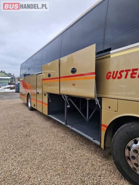 : video, WC, lodówka, caffebar, oświetlenie indywidualne, ABS, ASR, tempomat, retarder, podnóżki, mikrofon, klimatyzacja, regulacja wysokości nadwozia, podwójne szyby boczne, elektryczne lusterka, aluminiowe felgi, fotele odchylane i rozsuwane, DVD, ogrzewanie stacjonarne, hak holowniczy, ESP