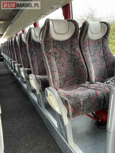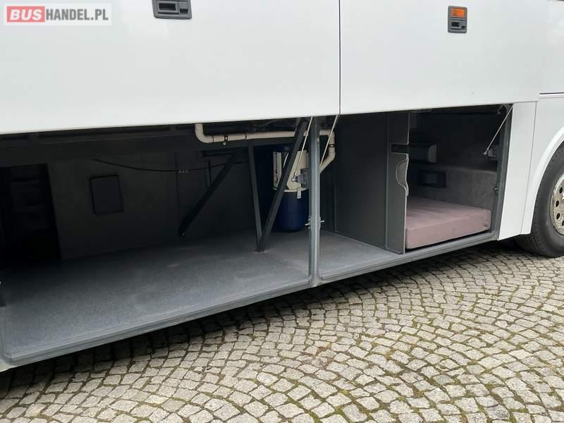 : WC, lodówka, kabina sypialna, fotele odchylane, oświetlenie indywidualne, nawiewy dyszowe, siateczki, ABS, ASR, tempomat, retarder, nawigacja, CD, podnóżki, stoliczki, mikrofon, klimatyzacja, radio, regulacja wysokości nadwozia, centralny zamek, podwójne szyby boczne, wspomaganie kierownicy, elektryczne lusterka, DVD, ogrzewanie stacjonarne, ESP