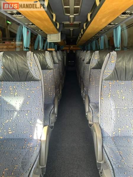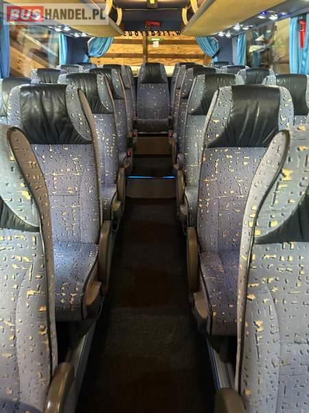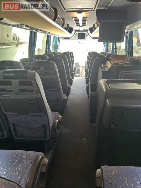 : video, WC, lodówka, caffebar, kabina sypialna, fotele odchylane, oświetlenie indywidualne, nawiewy dyszowe, siateczki, ABS, ASR, tempomat, retarder, nawigacja, CD, podnóżki, stoliczki, mikrofon, klimatyzacja, radio, sejf, regulacja wysokości nadwozia, centralny zamek, podwójne szyby boczne, wspomaganie kierownicy, elektryczne lusterka, DVD, ogrzewanie stacjonarne, hak holowniczy, ESP