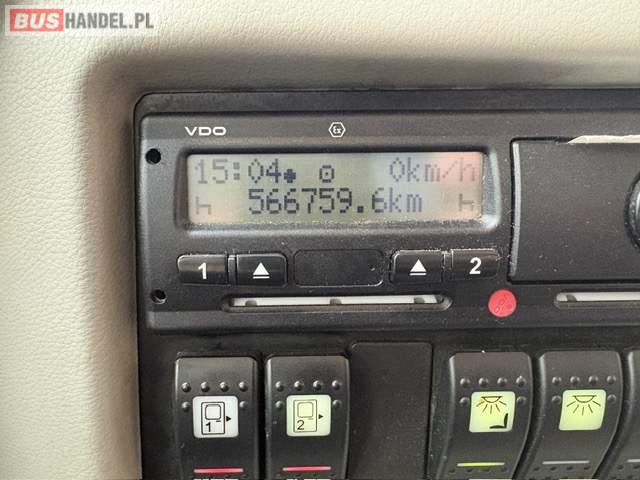 : WC, lodówka, fotele odchylane, oświetlenie indywidualne, nawiewy dyszowe, siateczki, ABS, ASR, tempomat, retarder, podnóżki, stoliczki, mikrofon, klimatyzacja, radio, sejf, regulacja wysokości nadwozia, centralny zamek, podwójne szyby boczne, wspomaganie kierownicy, elektryczne lusterka, DVD, ogrzewanie stacjonarne, ESP