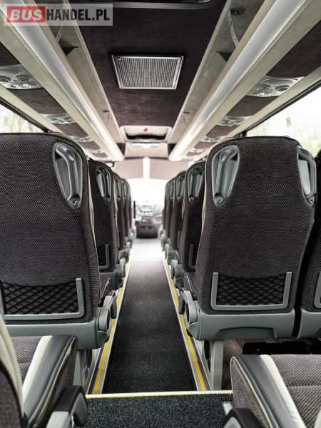 : video, oświetlenie indywidualne, nawiewy dyszowe, siateczki, ABS, ASR, tempomat, retarder, mikrofon, klimatyzacja, radio, regulacja wysokości nadwozia, centralny zamek, podwójne szyby boczne, wspomaganie kierownicy, fotele odchylane i rozsuwane, DVD, ogrzewanie stacjonarne, hak holowniczy