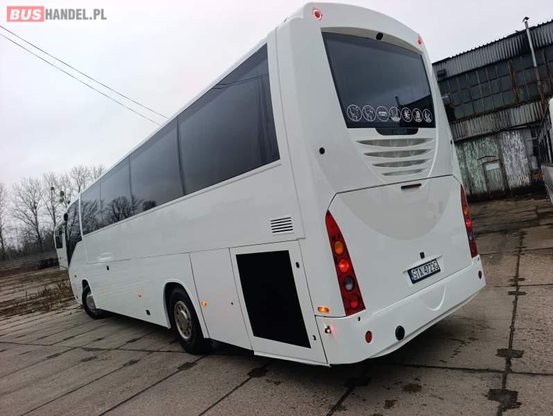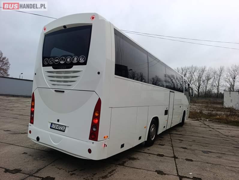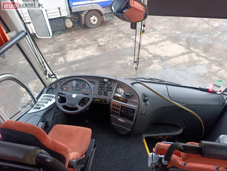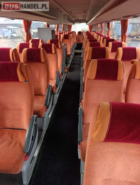 : video, WC, lodówka, caffebar, kabina sypialna, oświetlenie indywidualne, nawiewy dyszowe, siateczki, ABS, ASR, tempomat, retarder, telefon, CD, podnóżki, stoliczki, mikrofon, klimatyzacja, radio, sejf, regulacja wysokości nadwozia, centralny zamek, podwójne szyby boczne, wspomaganie kierownicy, elektryczne lusterka, fotele odchylane i rozsuwane, DVD, ogrzewanie stacjonarne, ESP