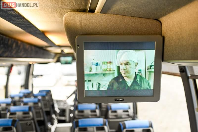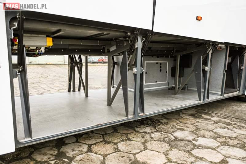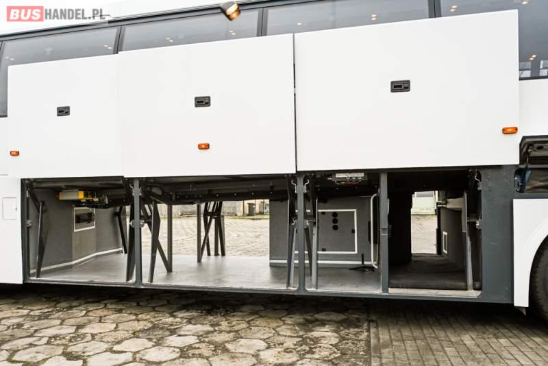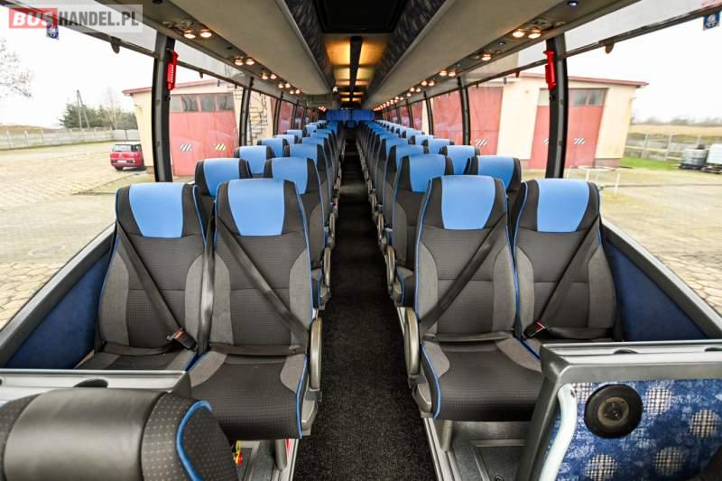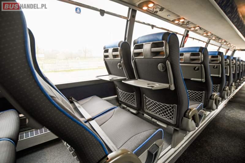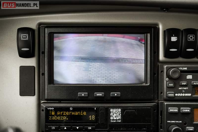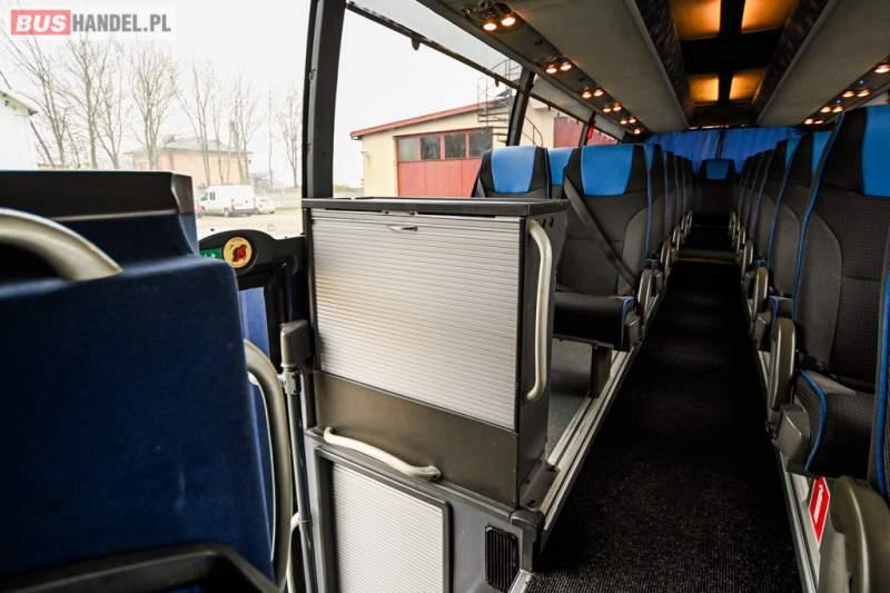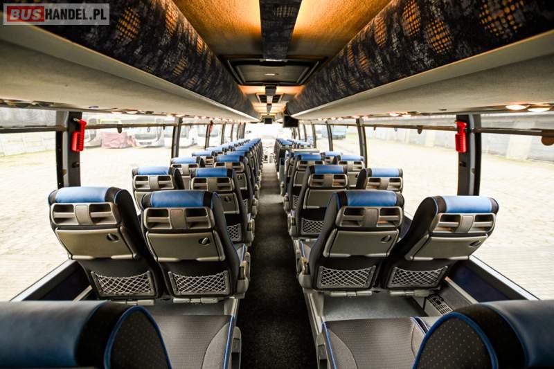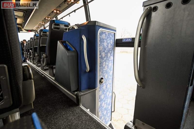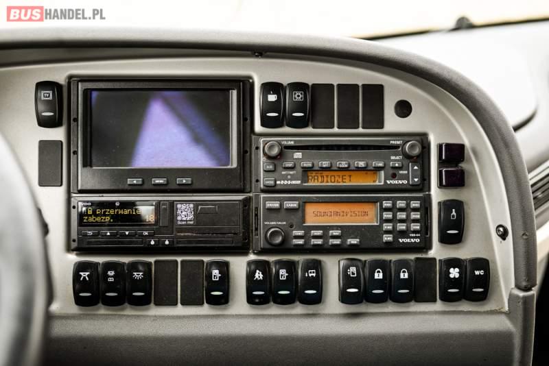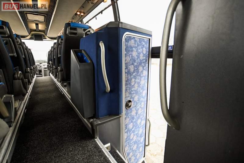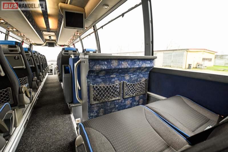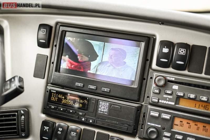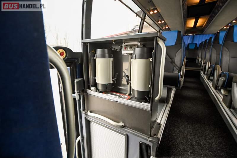 : WC, lodówka, caffebar, kabina sypialna, oświetlenie indywidualne, nawiewy dyszowe, siateczki, ABS, ASR, tempomat, retarder, telefon, CD, podnóżki, stoliczki, mikrofon, klimatyzacja, radio, wyświetlacz matrix, sejf, regulacja wysokości nadwozia, centralny zamek, podwójne szyby boczne, wspomaganie kierownicy, elektryczne lusterka, fotele odchylane i rozsuwane, DVD, ogrzewanie stacjonarne, ESP
