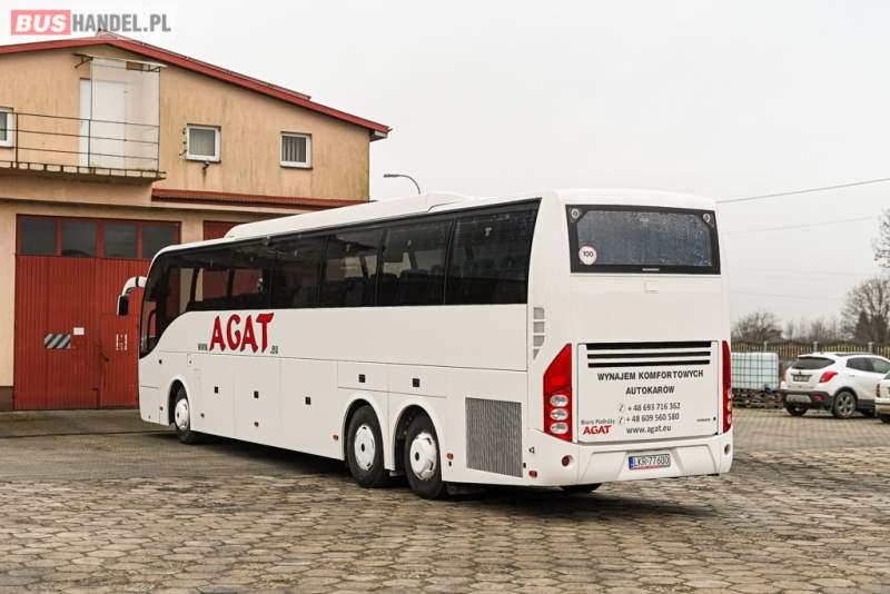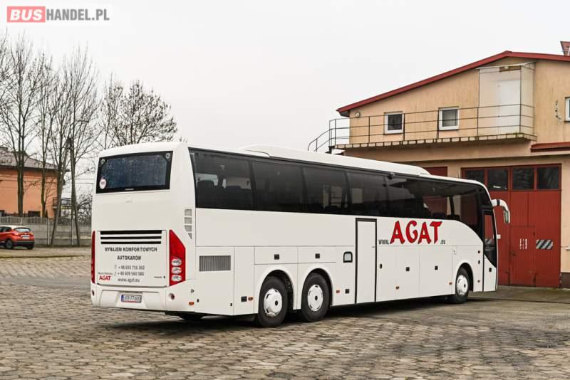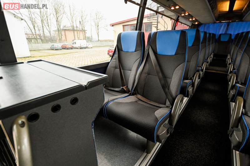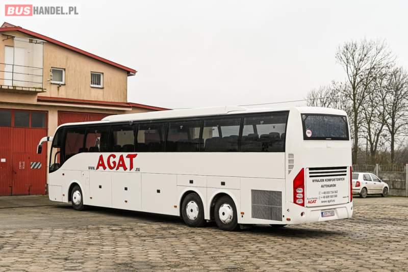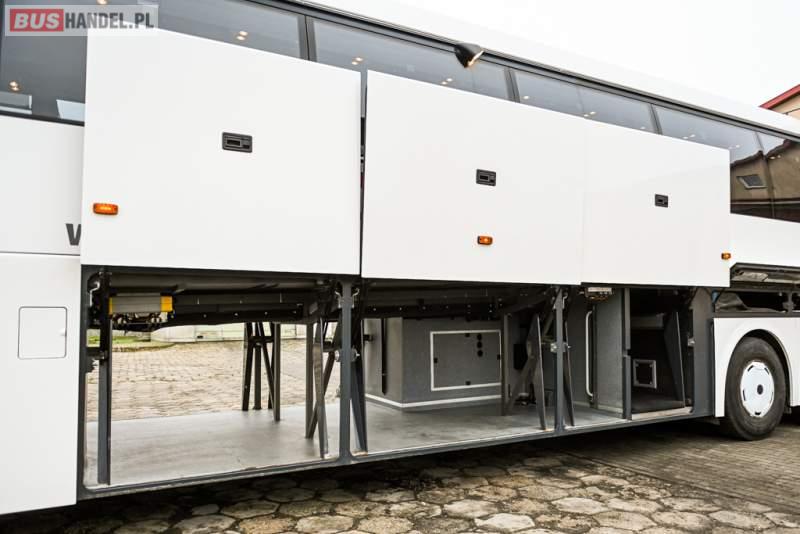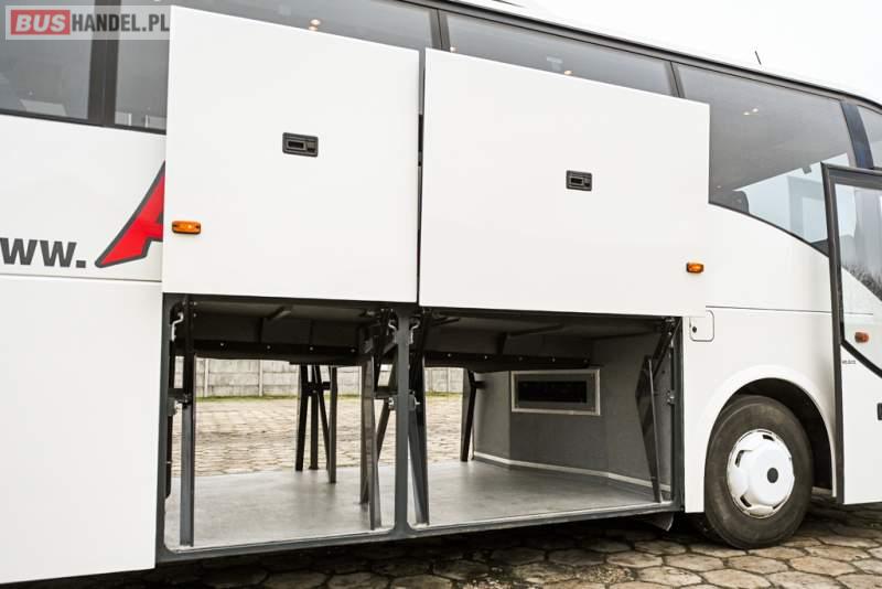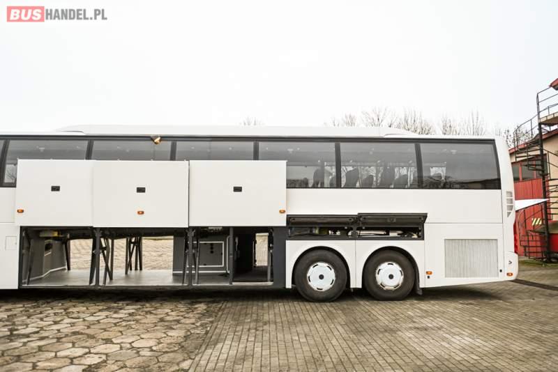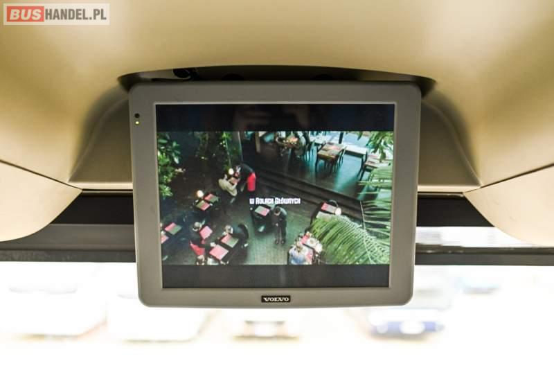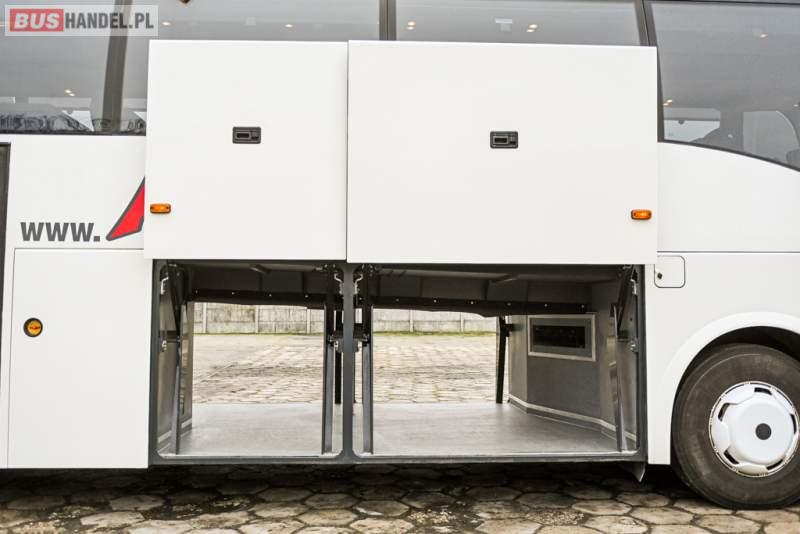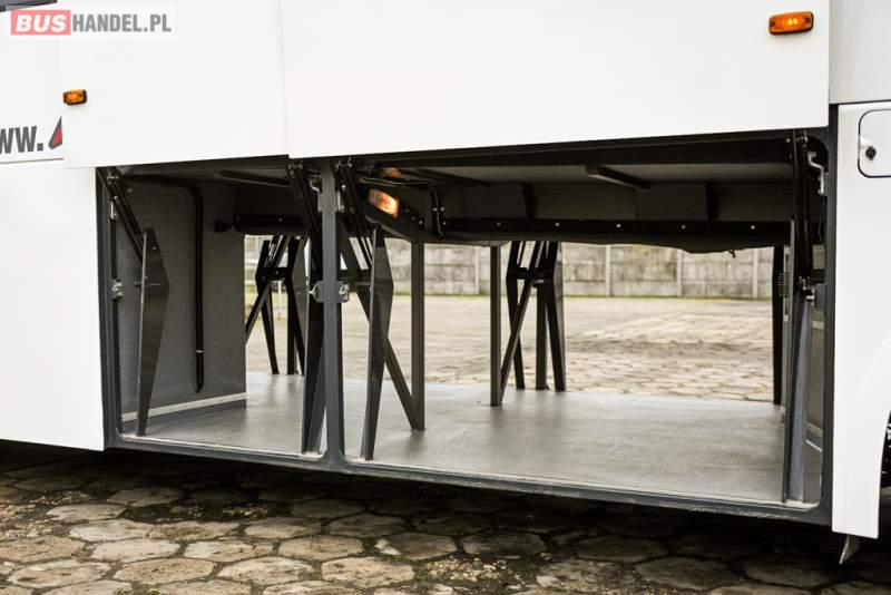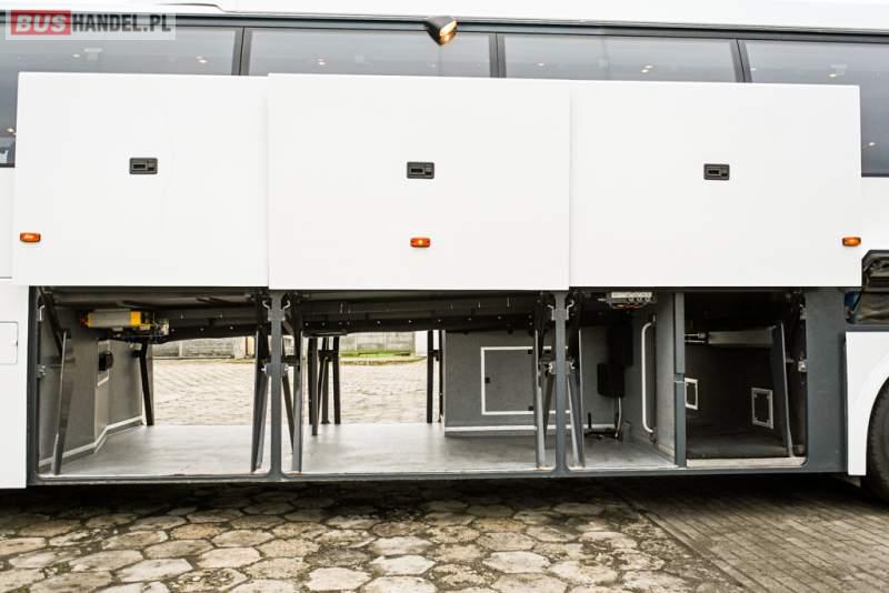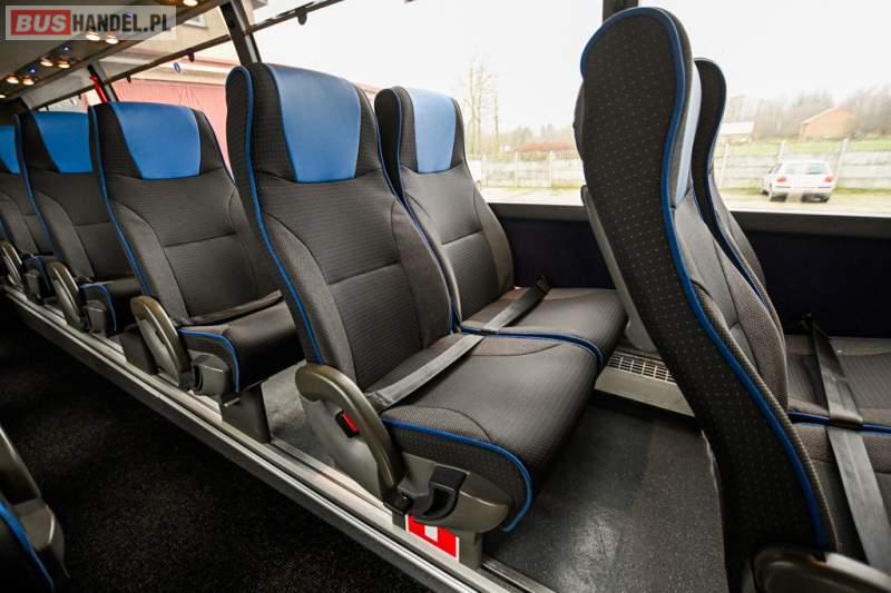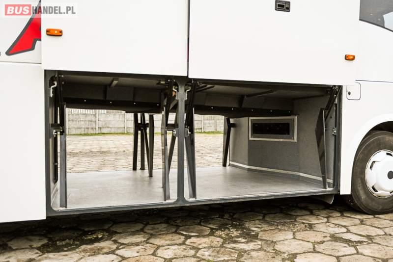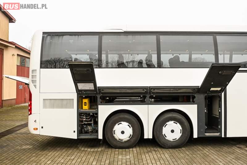 : WC, lodówka, caffebar, kabina sypialna, oświetlenie indywidualne, nawiewy dyszowe, siateczki, ABS, ASR, tempomat, retarder, telefon, CD, podnóżki, stoliczki, mikrofon, klimatyzacja, radio, wyświetlacz matrix, sejf, regulacja wysokości nadwozia, centralny zamek, podwójne szyby boczne, wspomaganie kierownicy, elektryczne lusterka, fotele odchylane i rozsuwane, DVD, ogrzewanie stacjonarne, ESP