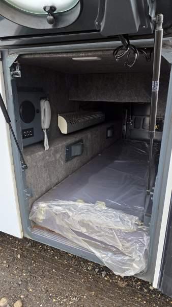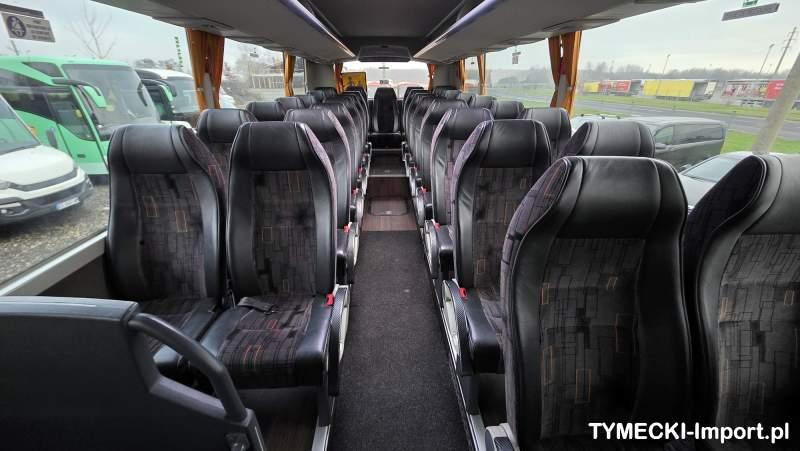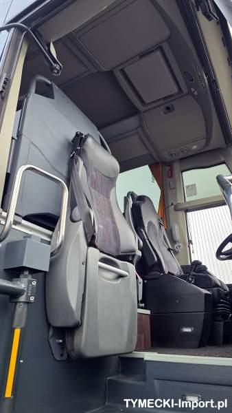 : video, lodówka, kabina sypialna, fotele odchylane, oświetlenie indywidualne, nawiewy dyszowe, ABS, ASR, tempomat, retarder, nawigacja, CD, podnóżki, mikrofon, klimatyzacja, radio, regulacja wysokości nadwozia, centralny zamek, podwójne szyby boczne, wspomaganie kierownicy, elektryczne lusterka, DVD, ogrzewanie stacjonarne, ESP