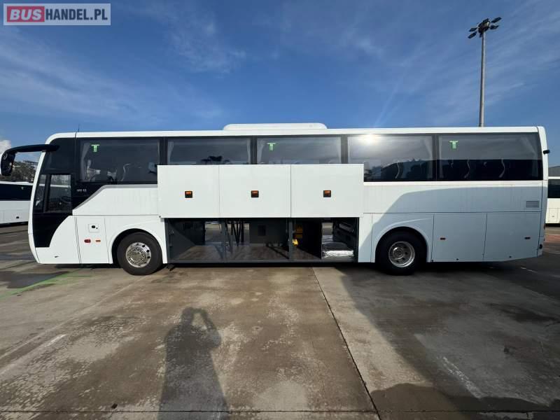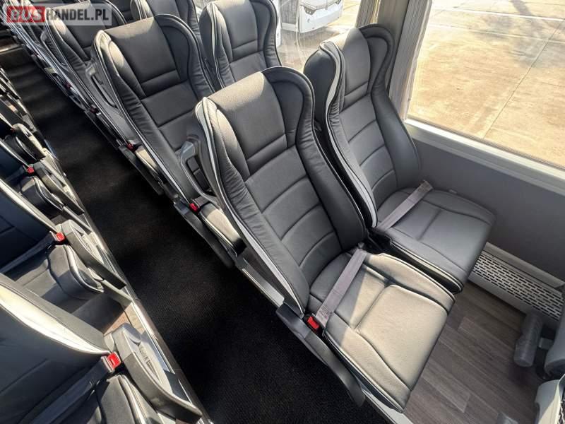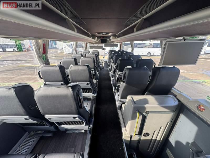 : video, WC, lodówka, kabina sypialna, oświetlenie indywidualne, nawiewy dyszowe, siateczki, ABS, ASR, tempomat, retarder, telefon, CD, podnóżki, stoliczki, mikrofon, klimatyzacja, radio, kuchenka mikrofalowa, regulacja wysokości nadwozia, centralny zamek, podwójne szyby boczne, wspomaganie kierownicy, elektryczne lusterka, aluminiowe felgi, fotele odchylane i rozsuwane, DVD, ogrzewanie stacjonarne, ESP
