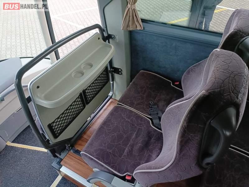 : video, WC, kabina sypialna, fotele odchylane, siateczki, ABS, ASR, tempomat, retarder, CD, podnóżki, stoliczki, mikrofon, klimatyzacja, radio, regulacja wysokości nadwozia, podwójne szyby boczne, elektryczne lusterka, DVD, ESP