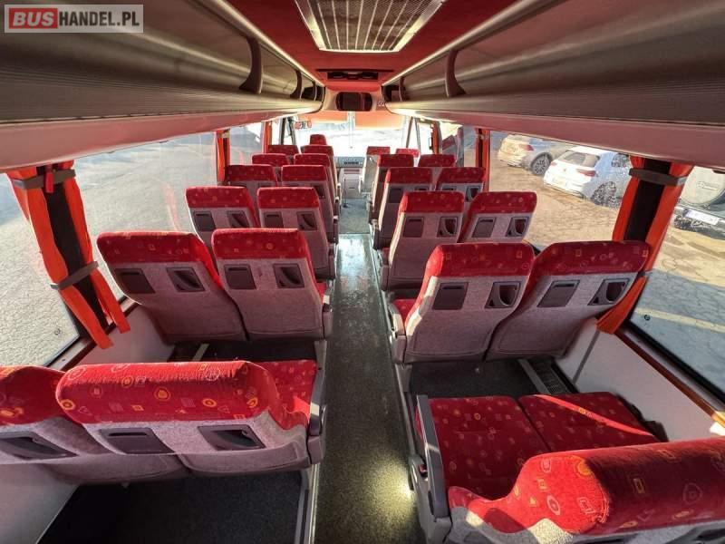 : lodówka, fotele odchylane, oświetlenie indywidualne, nawiewy dyszowe, siateczki, ABS, ASR, tempomat, retarder, podnóżki, stoliczki, mikrofon, klimatyzacja, radio, regulacja wysokości nadwozia, centralny zamek, podwójne szyby boczne, wspomaganie kierownicy, elektryczne lusterka, DVD, ogrzewanie stacjonarne