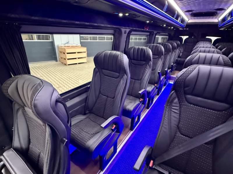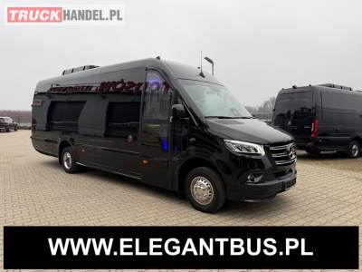 Fabrycznie nowy autobus Autobus dostępny od zaraz ! Nr. Oferty: 511 Mercedes-Benz Elegantbus Sprinter 519 EURO VI E GSR II 22+1+1 miejsc siedzących z możliwością szybkiej zmiany na 19+1+1 miejsc siedzących i zwiększenia przestrzeni bagażowej ! Wersja XXXL o długości 7, 87 m Pojemność: 1950 cm3 Pakiet stylistyczny Moc: 190 KM Rok produkcji: 2025 Kolor: Czarny Obsidian Metalik PODSTAWOWE I DODATKOWE WYPOSAŻENIE BAZOWE – ABS, SRS, ESP – Wspomaganie kierownicy – Automatyczna 9 stopniowa skrzynia biegów – Centralny zamek, immobiliser – Reflektory przednie w technologii LED – Tylne lampy częściowo w technologii LED – Asystent utrzymania pasa ruchu – Tempo 100 km/h – Elektryczne szyby – Sensor świateł oraz deszczu – Tempomat – Kierownica wielofunkcyjna, trójramienna – Stabilizacja poziom II – Wzmocnione opony 205/75/R16C – Dogrzewacz elektryczny PTC – Klimatyzacja półautomatyczna TEMPTRONIC – Fotel kierowcy komfortowy z podłokietnikiem – Światła z funkcją świateł do jazdy dziennej – Lusterko wsteczne – Asystent pasa ruchu – Zamykany schowek na kokpicie – Akumulator AGM 12V 95 Ah – Lusterko wsteczne wewnętrzne – Zbiornik paliwa powiększony: 93 litry – Chlapacze przednie – Chlapacze tylnie – Drugi akumulator w komorze silnika – Nawigacja satelitarna – Apple Car Play - Android Auto FOTELE PRZEDZIAŁU PASAŻERSKIEGO – Komfortowe turystyczne fotele przedziału pasażerskiego (regulacja oparcia oraz przesuw boczny) – Fotele posiadają pasy bezpieczeństwa, podłokietniki, siateczki, stoliki, rączki, komfortowe zagłówki, – Fotele montowane na podestach – Fotel pilota na słupku B PRZESZKLENIE POJAZDU – Szyby podwójne, przyciemniane fabrycznie – Firanki przeciwsłoneczne na prowadnicach – Szyby drzwi elektrycznych podgrzewane SYSTEMY GRZEWCZE – Grzejniki konwektorowe wodne zainstalowane w przedziale pasażerskim po lewej i prawej stronie – Postojowe ogrzewanie wodne, oryginalne EBERSCHPRECHER 5 kW KLIMATYZACJA – Automatyczna Klimatyzacja dachowa WEBASTO 12, 5 kW OŚWIETLENIE – Oświetlenie indywidualne – Oświetlenie postojowe – Oświetlenie nocne – Podświetlane stopnie wejściowe – Podesty z podświetleniem LED – Lampy obrysowe dachowe LED MULTIMEDIA – System multimedialny MBUX 10, 5 cala – Oryginalna Kamera Cofania – Mikrofon – Nagłośnienie przestrzeni pasażerskiej PIONNER – Gniazda USB dla każdego rzędu siedzeń – Przetwornica 230v PRZECHOWYWANIE BAGAŻU I UBRAŃ – Turystyczne półki bagażowe – Lodówka o pojemności 40 litrów – Pogłębiony tylny bagażnik – Wieszaki ubraniowe ELEMENTY BEZPIECZEŃSTWA – Podłoga antypoślizgowa PCV, odporna na ścieranie, wodoodporna – Szyberdach wentylacyjny / wyjście awaryjne – Młotki bezpieczeństwa – Dodatkowa gaśnica 2 kg ELEMENTY FUNKCJONALNE – Elektryczne drzwi wejściowe sterowane z przycisku i pilota – Podwójny stopień wejściowy oświetlony LED – Przedłużenie pojazdu w tylnej części – Hak holowniczy LIFTING ZEWNĘTRZNY – Lakierowane zderzaki, listwy, klamki, lusterka i grill w kolorze pojazdu – Spojlery dolne w kolorze nadwozia Sprzedający:
