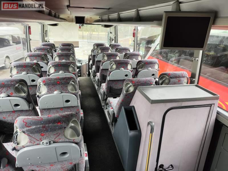 : video, WC, lodówka, fotele odchylane, oświetlenie indywidualne, nawiewy dyszowe, siateczki, ABS, ASR, tempomat, retarder, nawigacja, CD, podnóżki, stoliczki, mikrofon, klimatyzacja, radio, regulacja wysokości nadwozia, centralny zamek, podwójne szyby boczne, wspomaganie kierownicy, elektryczne lusterka, DVD, ogrzewanie stacjonarne, ESP