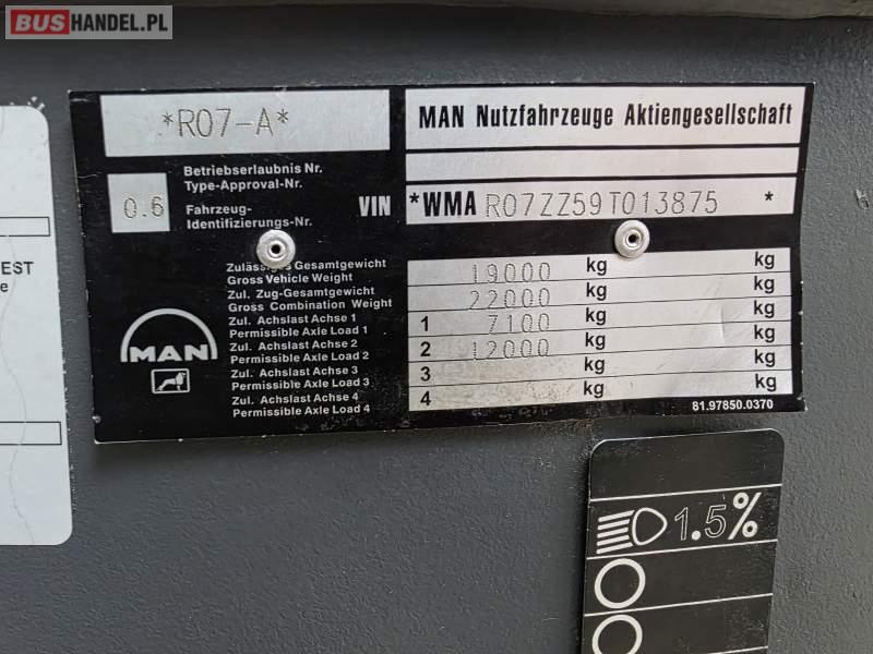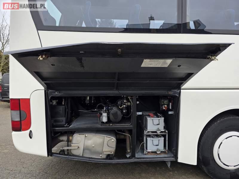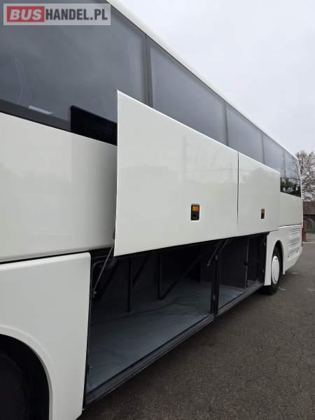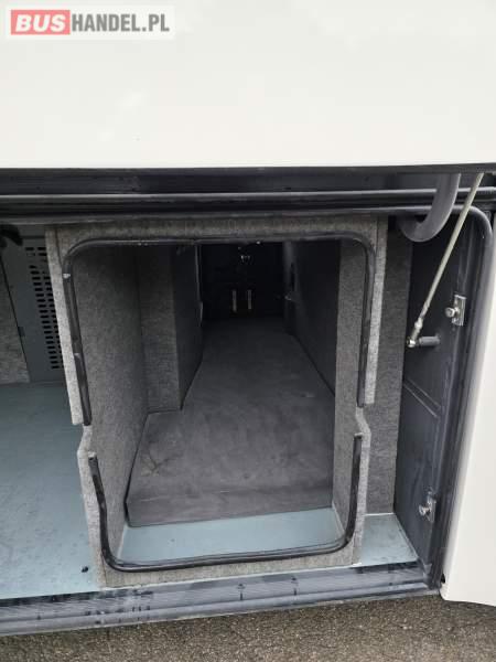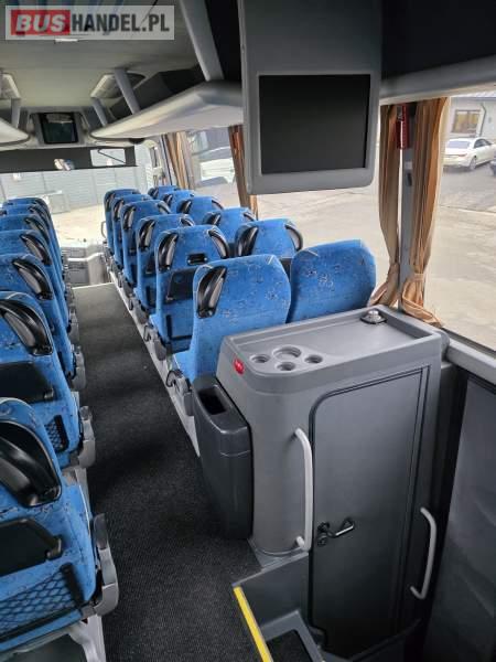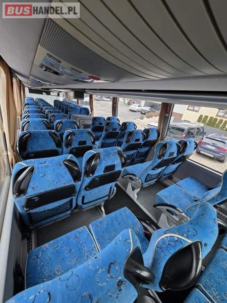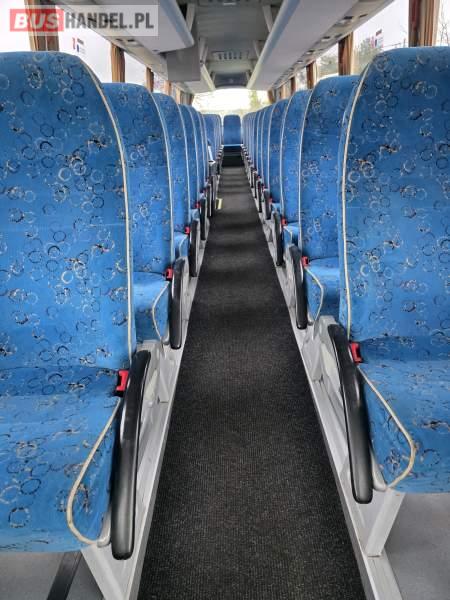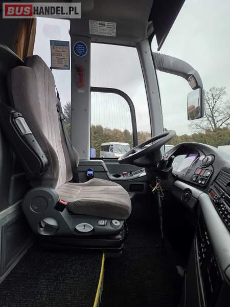 : WC, lodówka, kabina sypialna, fotele odchylane, oświetlenie indywidualne, nawiewy dyszowe, siateczki, ABS, ASR, tempomat, retarder, podnóżki, stoliczki, mikrofon, klimatyzacja, radio, regulacja wysokości nadwozia, centralny zamek, podwójne szyby boczne, wspomaganie kierownicy, elektryczne lusterka, DVD, ogrzewanie stacjonarne