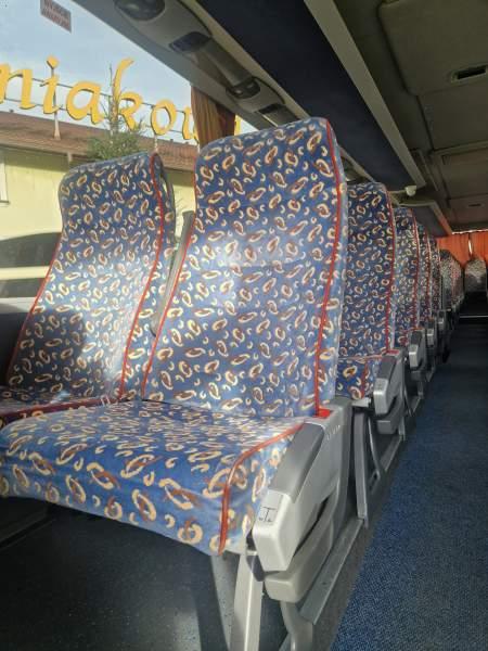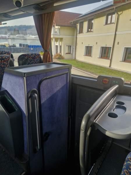 : video, WC, lodówka, kabina sypialna, fotele odchylane, oświetlenie indywidualne, nawiewy dyszowe, siateczki, ABS, ASR, tempomat, retarder, CD, podnóżki, mikrofon, klimatyzacja, radio, regulacja wysokości nadwozia, podwójne szyby boczne, wspomaganie kierownicy, elektryczne lusterka, aluminiowe felgi, fotele odchylane i rozsuwane, DVD, ogrzewanie stacjonarne, ESP