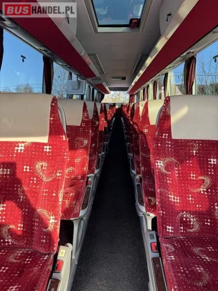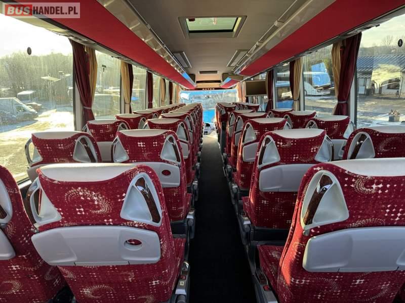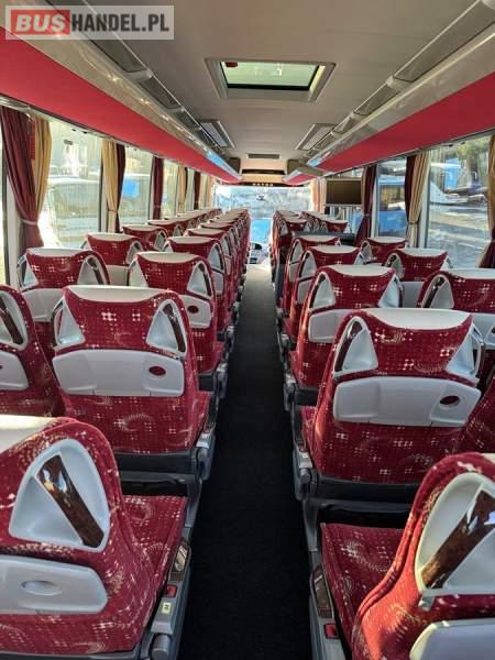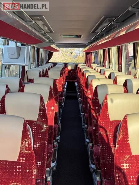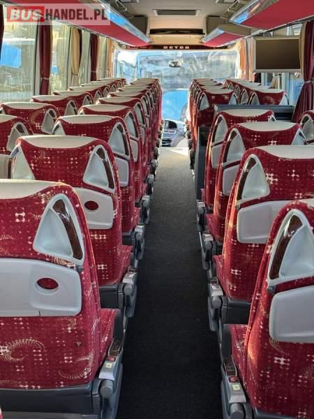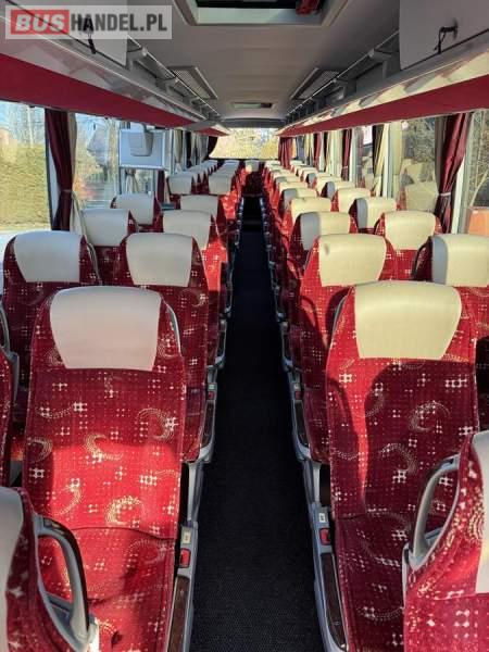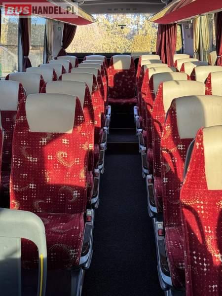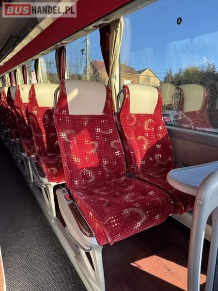: klimatyzacja, WC, lodówka, caffebar, oświetlenie indywidualne, nawiewy dyszowe, podnóżki, stoliczki, siateczki, ABS, ASR, tempomat, retarder, nawigacja, CD, mikrofon, radio, fotele odchylane i rozsuwane, sejf, regulacja wysokości nadwozia, centralny zamek, podwójne szyby boczne, wspomaganie kierownicy, elektryczne lusterka, ogrzewanie stacjonarne, DVD, ESP
