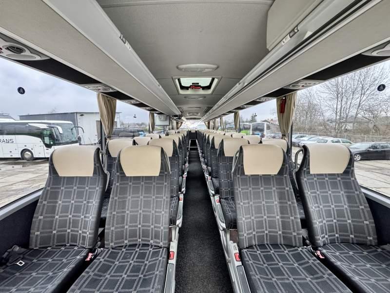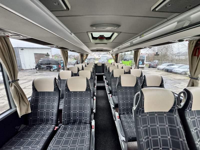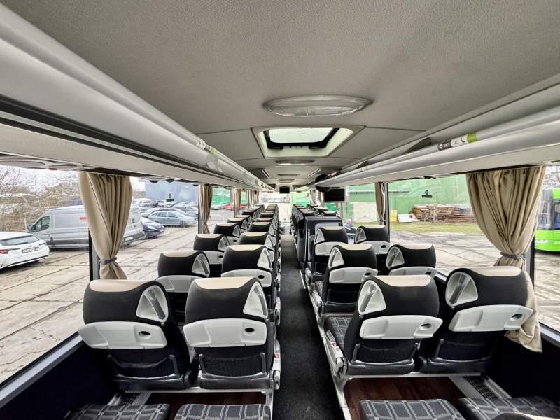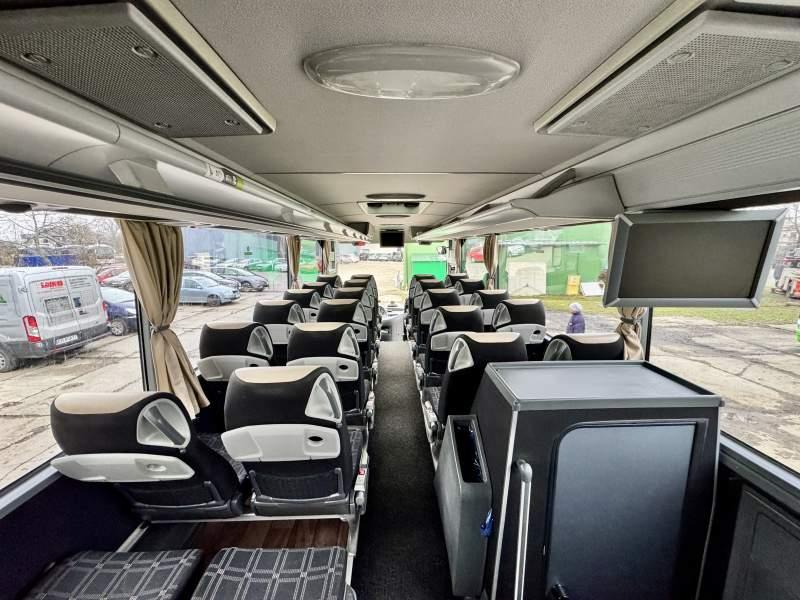 : video, WC, lodówka, caffebar, kabina sypialna, oświetlenie indywidualne, nawiewy dyszowe, siateczki, ABS, ASR, tempomat, retarder, CD, podnóżki, stoliczki, mikrofon, klimatyzacja, radio, sejf, regulacja wysokości nadwozia, centralny zamek, podwójne szyby boczne, wspomaganie kierownicy, elektryczne lusterka, aluminiowe felgi, fotele odchylane i rozsuwane, DVD, ogrzewanie stacjonarne, ESP