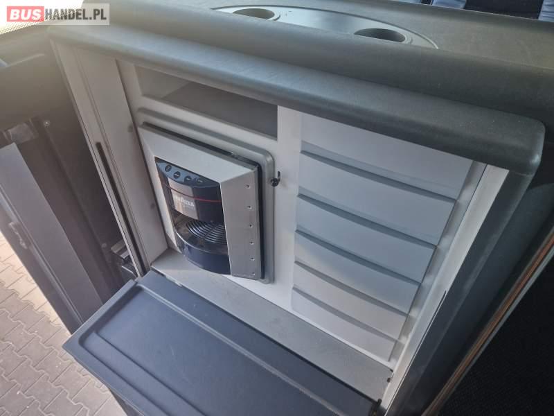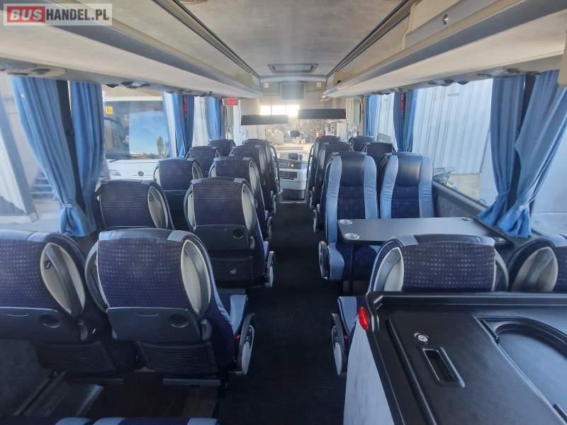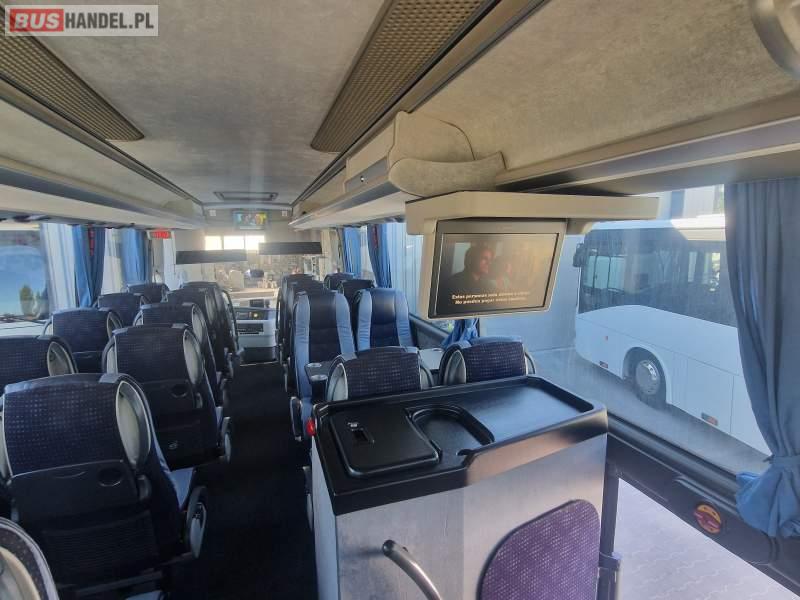 : video, WC, lodówka, caffebar, fotele odchylane, oświetlenie indywidualne, nawiewy dyszowe, siateczki, ABS, ASR, tempomat, retarder, CD, podnóżki, stoliczki, mikrofon, klimatyzacja, radio, wyświetlacz matrix, regulacja wysokości nadwozia, centralny zamek, podwójne szyby boczne, wspomaganie kierownicy, elektryczne lusterka, fotele odchylane i rozsuwane, DVD, ogrzewanie stacjonarne, ESP