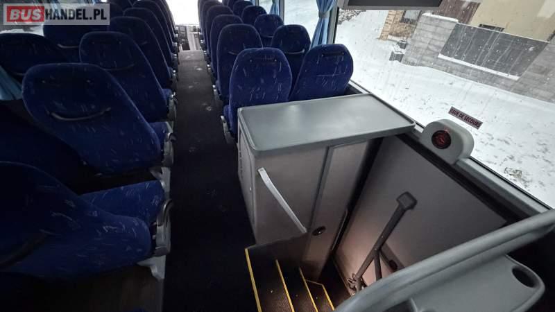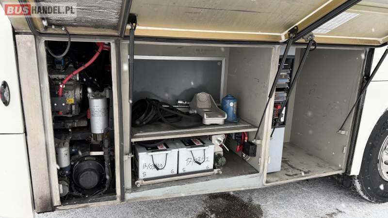 : WC, lodówka, oświetlenie indywidualne, nawiewy dyszowe, siateczki, ABS, ASR, tempomat, retarder, telefon, podnóżki, stoliczki, mikrofon, klimatyzacja, radio, regulacja wysokości nadwozia, centralny zamek, podwójne szyby boczne, wspomaganie kierownicy, elektryczne lusterka, fotele odchylane i rozsuwane, DVD, ogrzewanie stacjonarne, ESP