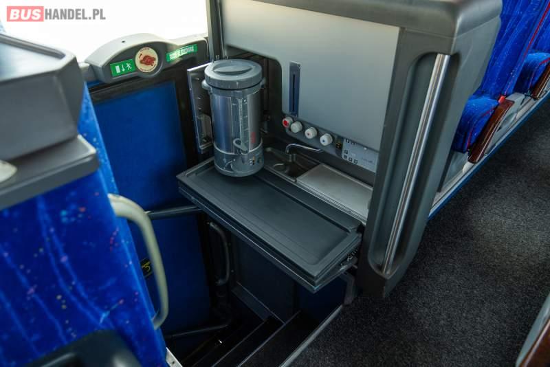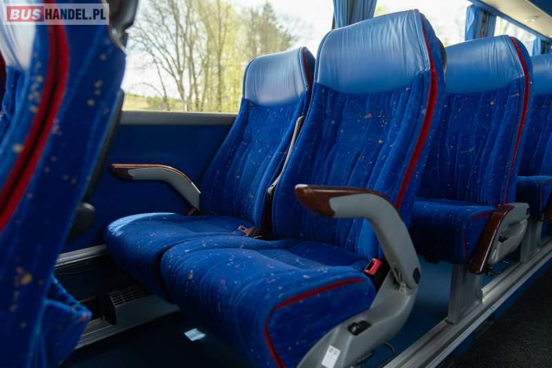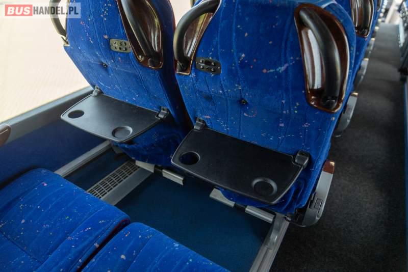 : video, WC, lodówka, caffebar, kabina sypialna, fotele odchylane, oświetlenie indywidualne, nawiewy dyszowe, siateczki, ABS, ASR, tempomat, retarder, telefon, nawigacja, CD, podnóżki, stoliczki, mikrofon, klimatyzacja, radio, sejf, regulacja wysokości nadwozia, centralny zamek, podwójne szyby boczne, wspomaganie kierownicy, elektryczne lusterka, aluminiowe felgi, fotele odchylane i rozsuwane, DVD, ogrzewanie stacjonarne, hak holowniczy, ESP