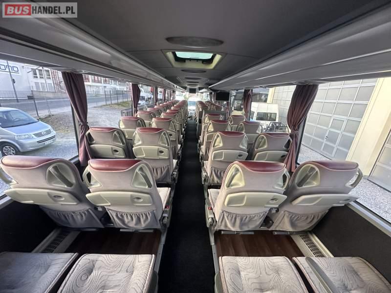 : video, WC, lodówka, caffebar, ABS, ASR, tempomat, retarder, CD, podnóżki, mikrofon, klimatyzacja, radio, podwójne szyby boczne, wspomaganie kierownicy, fotele odchylane i rozsuwane, DVD, ogrzewanie stacjonarne, ESP