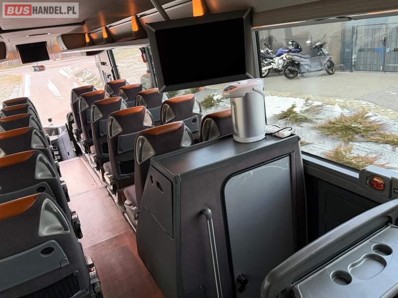 : video, WC, lodówka, caffebar, kabina sypialna, oświetlenie indywidualne, nawiewy dyszowe, siateczki, ABS, ASR, tempomat, retarder, CD, podnóżki, stoliczki, mikrofon, klimatyzacja, radio, regulacja wysokości nadwozia, podwójne szyby boczne, wspomaganie kierownicy, elektryczne lusterka, fotele odchylane i rozsuwane, DVD, ogrzewanie stacjonarne, ESP