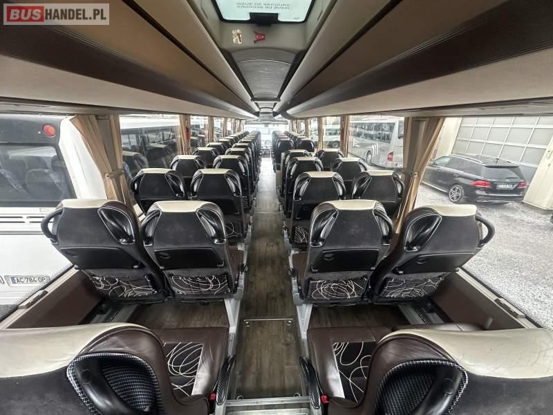 : lodówka, caffebar, kabina sypialna, oświetlenie indywidualne, ABS, ASR, retarder, nawigacja, CD, podnóżki, mikrofon, klimatyzacja, radio, kuchenka mikrofalowa, podwójne szyby boczne, aluminiowe felgi, fotele odchylane i rozsuwane, DVD, ogrzewanie stacjonarne, ESP