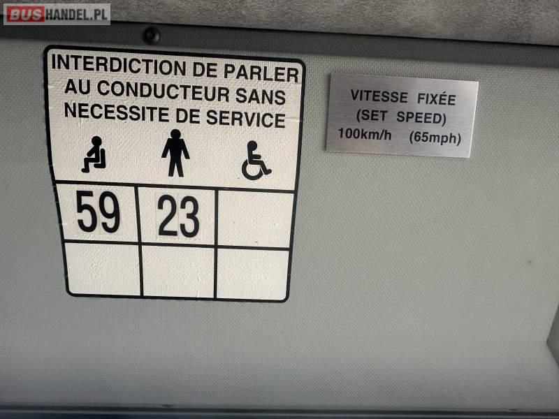 : video, lodówka, ABS, ASR, tempomat, retarder, CD, podnóżki, mikrofon, radio, podwójne szyby boczne, fotele odchylane i rozsuwane, DVD, ogrzewanie stacjonarne, ESP
