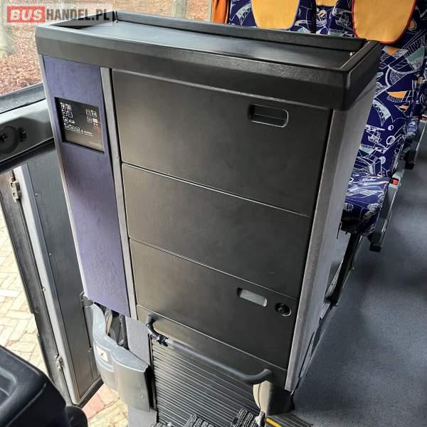 : video, WC, lodówka, kabina sypialna, oświetlenie indywidualne, nawiewy dyszowe, siateczki, ABS, tempomat, retarder, CD, podnóżki, mikrofon, klimatyzacja, radio, regulacja wysokości nadwozia, podwójne szyby boczne, wspomaganie kierownicy, elektryczne lusterka, fotele odchylane i rozsuwane, DVD, ogrzewanie stacjonarne