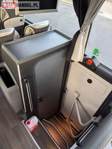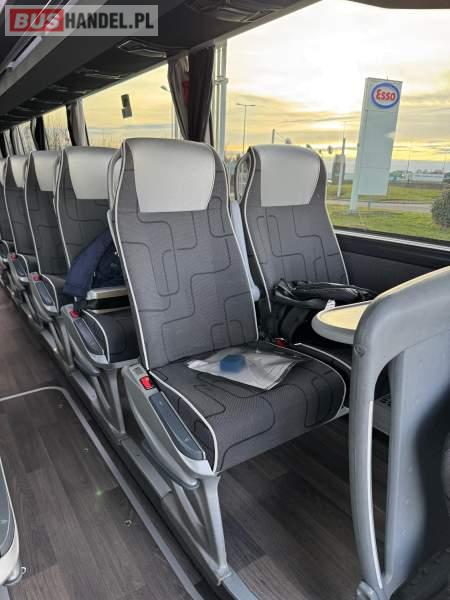 : WC, lodówka, kabina sypialna, fotele odchylane, oświetlenie indywidualne, nawiewy dyszowe, siateczki, ABS, ASR, tempomat, retarder, podnóżki, stoliczki, mikrofon, klimatyzacja, radio, sejf, regulacja wysokości nadwozia, centralny zamek, podwójne szyby boczne, wspomaganie kierownicy, elektryczne lusterka, aluminiowe felgi, fotele odchylane i rozsuwane, DVD, ogrzewanie stacjonarne, ESP