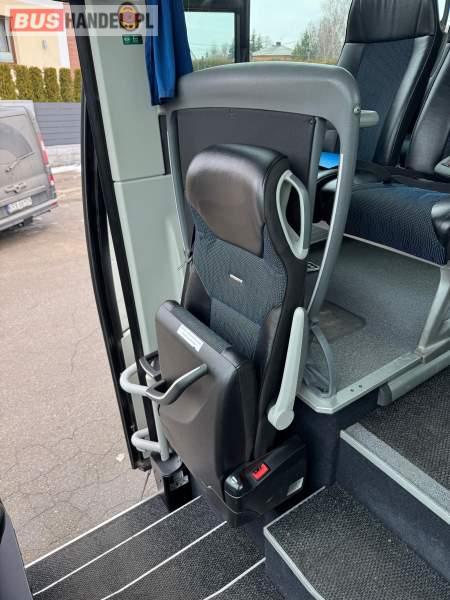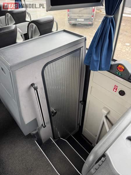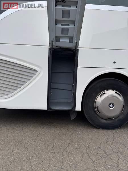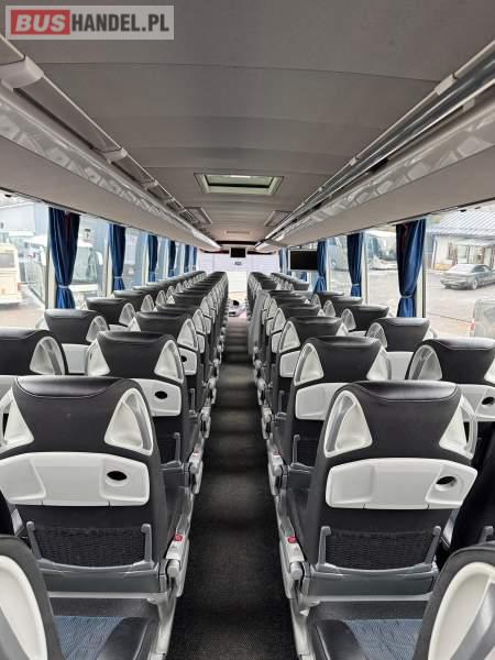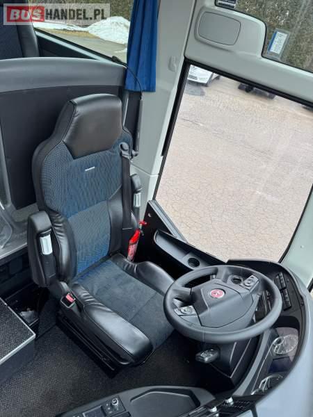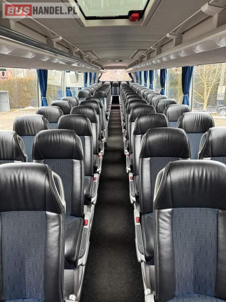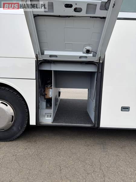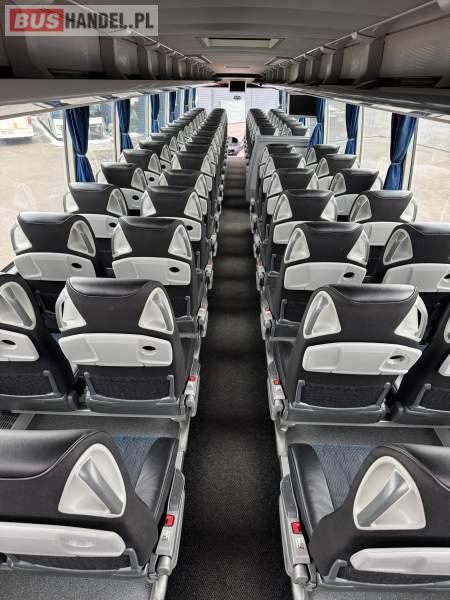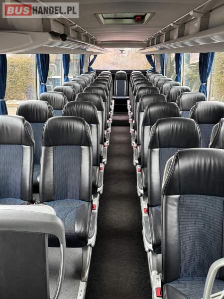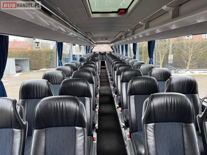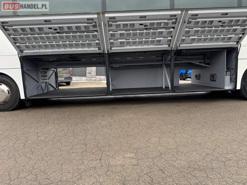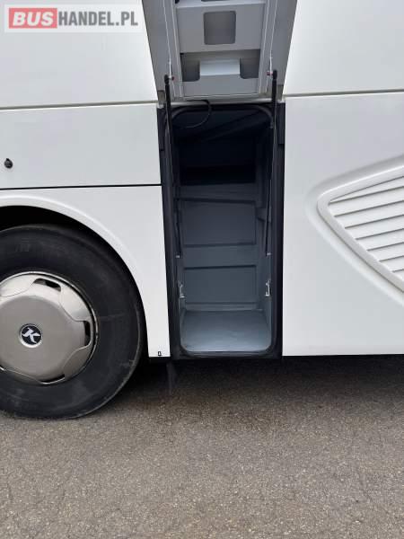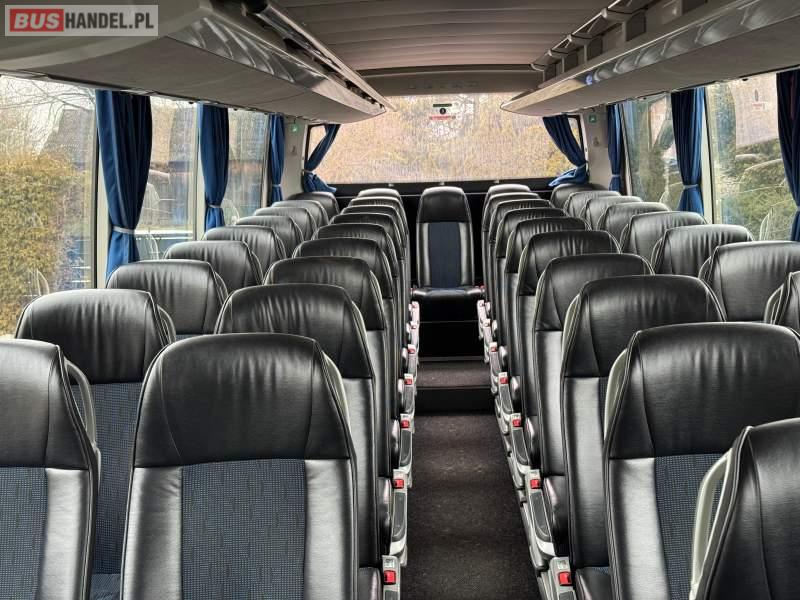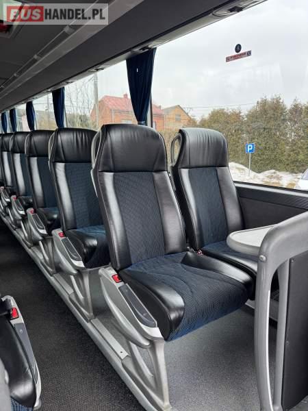 : klimatyzacja, WC, lodówka, caffebar, oświetlenie indywidualne, nawiewy dyszowe, podnóżki, stoliczki, siateczki, ABS, ASR, tempomat, retarder, mikrofon, radio, fotele odchylane i rozsuwane, sejf, regulacja wysokości nadwozia, centralny zamek, podwójne szyby boczne, wspomaganie kierownicy, elektryczne lusterka, ogrzewanie stacjonarne, DVD, ESP