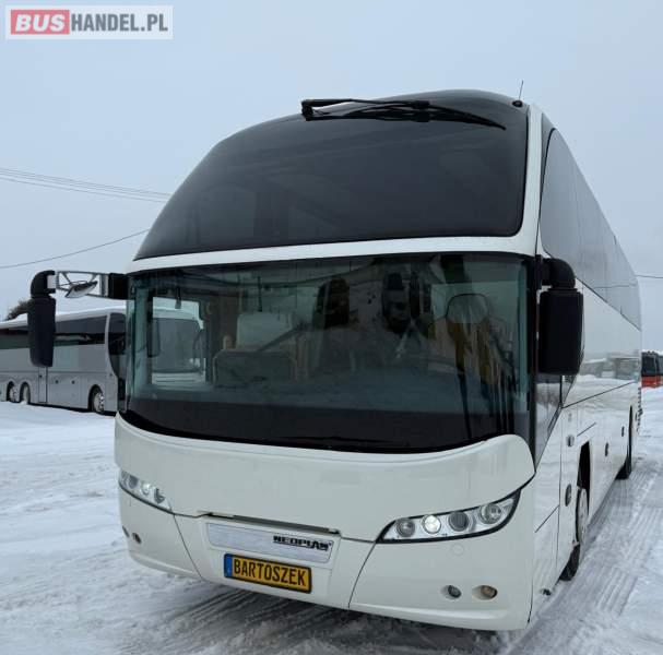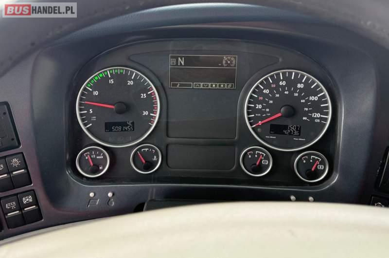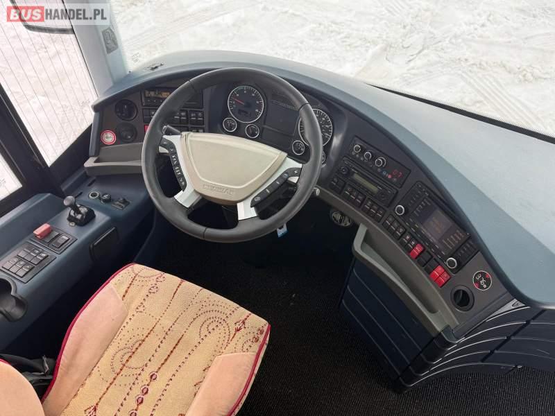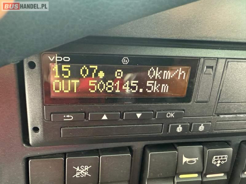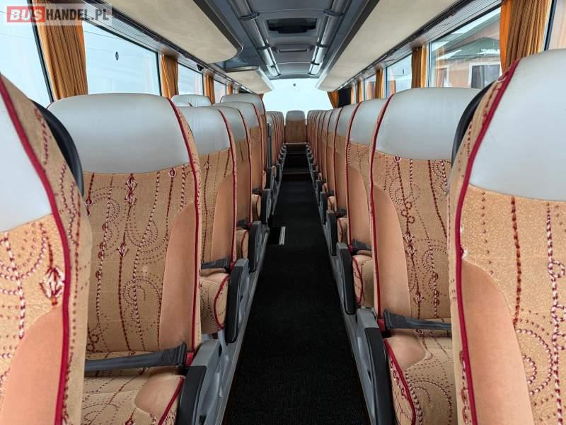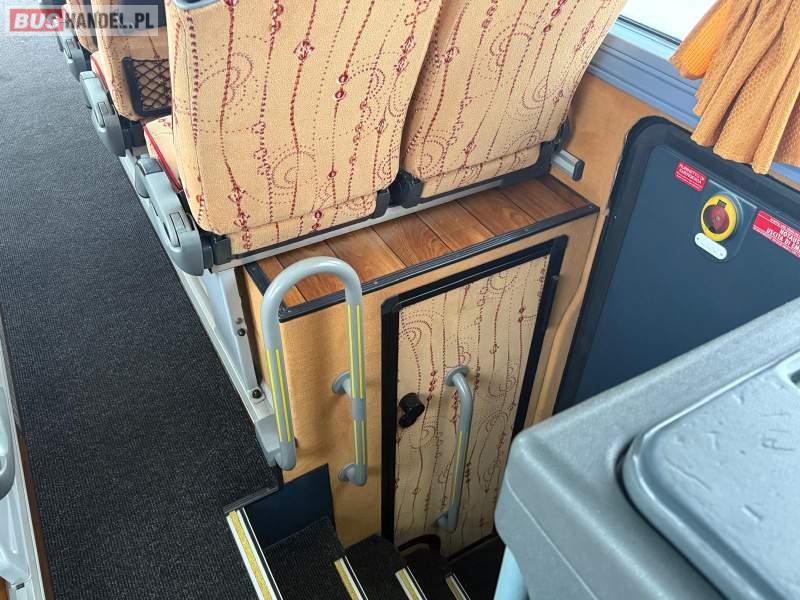 : klimatyzacja, video, WC, lodówka, caffebar, kabina sypialna, oświetlenie indywidualne, nawiewy dyszowe, podnóżki, stoliczki, siateczki, ABS, ASR, tempomat, retarder, nawigacja, CD, mikrofon, radio, fotele odchylane i rozsuwane, sejf, regulacja wysokości nadwozia, centralny zamek, podwójne szyby boczne, wspomaganie kierownicy, aluminiowe felgi, elektryczne lusterka, ogrzewanie stacjonarne, DVD, ESP