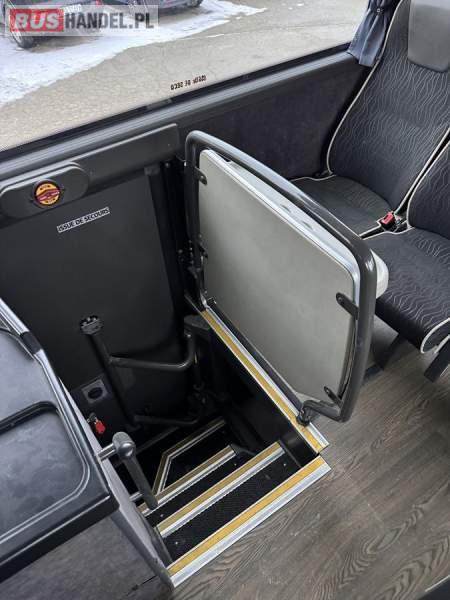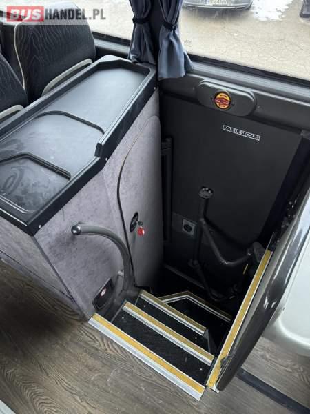 : WC, lodówka, kabina sypialna, fotele odchylane, oświetlenie indywidualne, nawiewy dyszowe, siateczki, ABS, ASR, tempomat, retarder, podnóżki, stoliczki, mikrofon, klimatyzacja, radio, sejf, regulacja wysokości nadwozia, centralny zamek, podwójne szyby boczne, wspomaganie kierownicy, elektryczne lusterka, fotele odchylane i rozsuwane, DVD, ogrzewanie stacjonarne, ESP