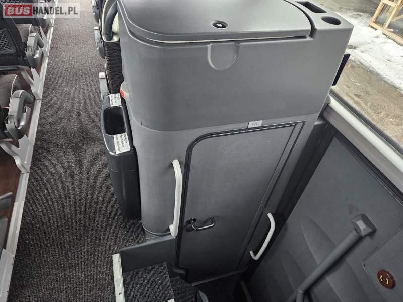 : video, WC, lodówka, caffebar, kabina sypialna, fotele odchylane, oświetlenie indywidualne, nawiewy dyszowe, siateczki, ABS, ASR, tempomat, retarder, CD, podnóżki, stoliczki, mikrofon, klimatyzacja, regulacja wysokości nadwozia, centralny zamek, podwójne szyby boczne, wspomaganie kierownicy, elektryczne lusterka, DVD, ogrzewanie stacjonarne, ESP