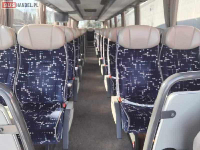 : video, WC, lodówka, caffebar, kabina sypialna, oświetlenie indywidualne, nawiewy dyszowe, siateczki, ABS, ASR, tempomat, retarder, podnóżki, stoliczki, mikrofon, klimatyzacja, radio, regulacja wysokości nadwozia, centralny zamek, podwójne szyby boczne, wspomaganie kierownicy, elektryczne lusterka, fotele odchylane i rozsuwane, DVD, ogrzewanie stacjonarne, ESP