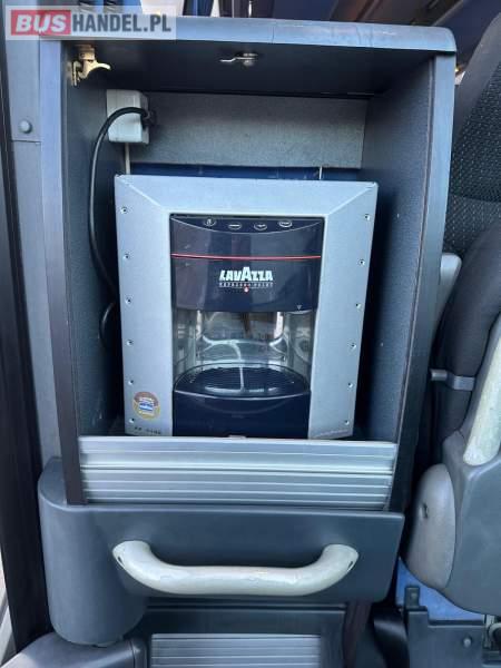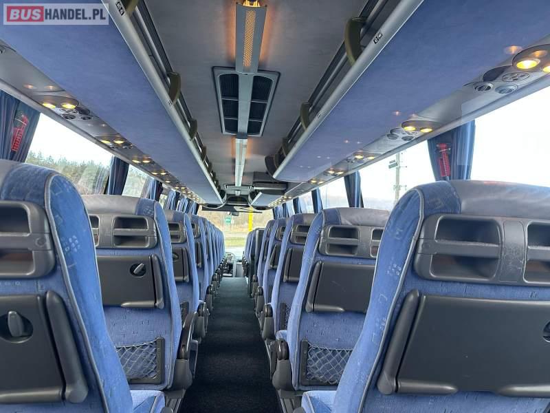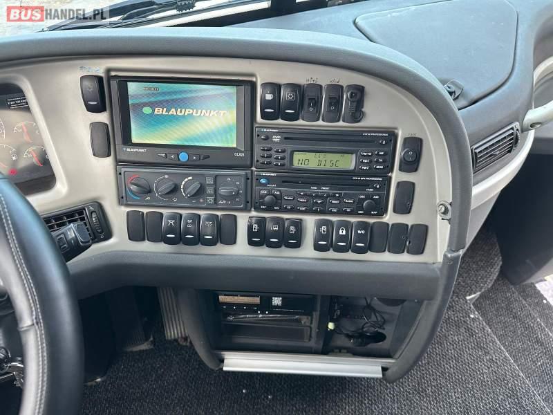 : video, WC, lodówka, caffebar, kabina sypialna, fotele odchylane, oświetlenie indywidualne, nawiewy dyszowe, siateczki, ABS, ASR, tempomat, retarder, telefon, nawigacja, CD, podnóżki, stoliczki, mikrofon, klimatyzacja, radio, wyświetlacz matrix, sejf, regulacja wysokości nadwozia, centralny zamek, podwójne szyby boczne, wspomaganie kierownicy, elektryczne lusterka, fotele odchylane i rozsuwane, DVD, ogrzewanie stacjonarne, hak holowniczy, ESP