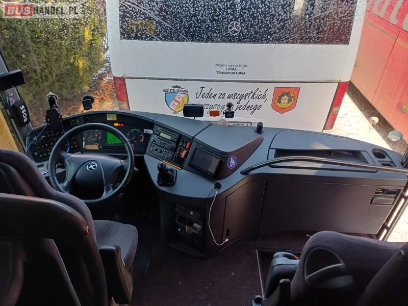 : WC, lodówka, caffebar, kabina sypialna, fotele odchylane, oświetlenie indywidualne, nawiewy dyszowe, ABS, ASR, tempomat, retarder, nawigacja, CD, podnóżki, stoliczki, mikrofon, klimatyzacja, radio, regulacja wysokości nadwozia, centralny zamek, podwójne szyby boczne, elektryczne lusterka, fotele odchylane i rozsuwane, DVD, ogrzewanie stacjonarne, hak holowniczy, ESP