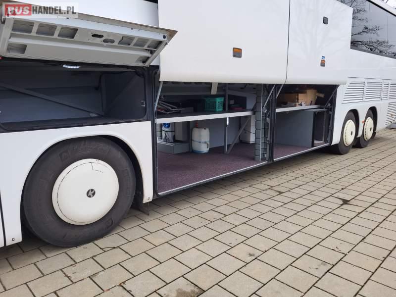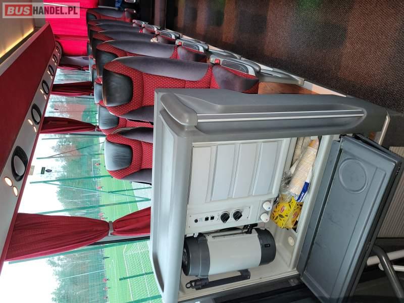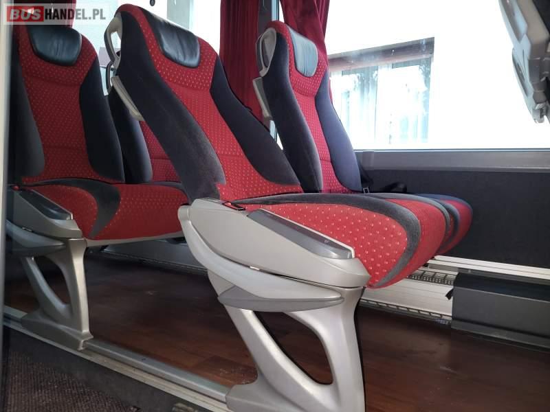 : klimatyzacja, video, WC, lodówka, caffebar, kabina sypialna, oświetlenie indywidualne, nawiewy dyszowe, podnóżki, stoliczki, siateczki, ABS, ASR, tempomat, retarder, telefon, nawigacja, CD, mikrofon, radio, fotele odchylane i rozsuwane, sejf, regulacja wysokości nadwozia, centralny zamek, podwójne szyby boczne, wspomaganie kierownicy, elektryczne lusterka, ogrzewanie stacjonarne, DVD, hak holowniczy, ESP
