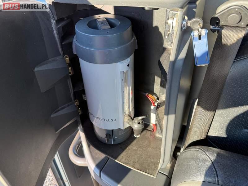 : klimatyzacja, video, WC, lodówka, caffebar, kabina sypialna, oświetlenie indywidualne, nawiewy dyszowe, podnóżki, stoliczki, siateczki, ABS, ASR, tempomat, retarder, nawigacja, CD, mikrofon, radio, fotele odchylane i rozsuwane, sejf, regulacja wysokości nadwozia, centralny zamek, podwójne szyby boczne, wspomaganie kierownicy, aluminiowe felgi, elektryczne lusterka, ogrzewanie stacjonarne, DVD, hak holowniczy, ESP
