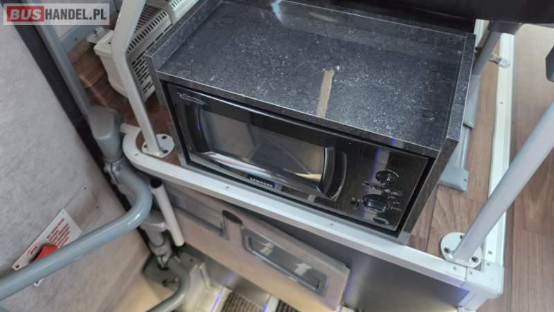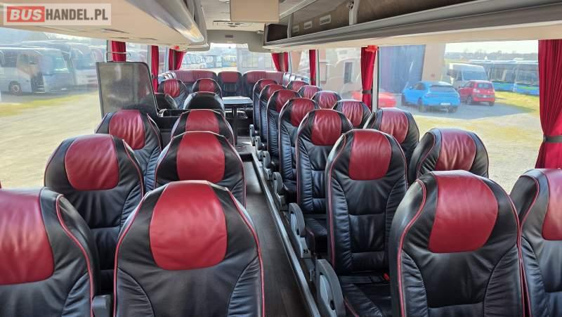 : video, WC, lodówka, caffebar, oświetlenie indywidualne, nawiewy dyszowe, siateczki, ABS, ASR, tempomat, retarder, CD, podnóżki, stoliczki, mikrofon, klimatyzacja, radio, kuchenka mikrofalowa, regulacja wysokości nadwozia, centralny zamek, podwójne szyby boczne, wspomaganie kierownicy, elektryczne lusterka, fotele odchylane i rozsuwane, DVD, ogrzewanie stacjonarne, ESP