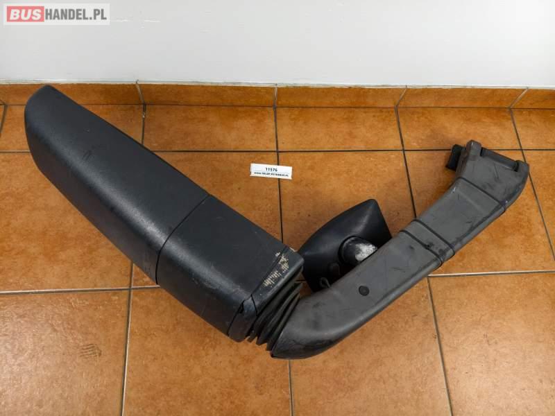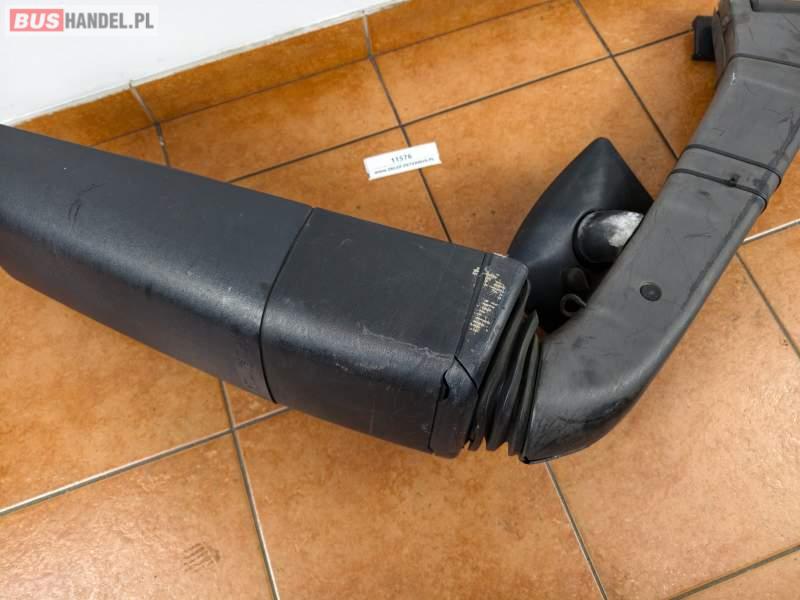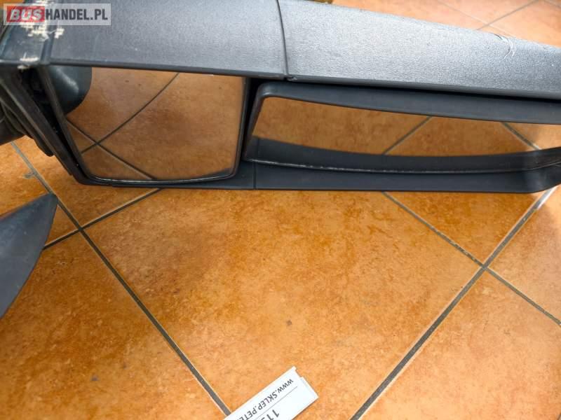 Lusterko prawe BOVA Futura, czarne, dwa lustra, dodatkowe lusterko martwego punktu, widoczne pęknięcia obudowy, możliwość montażu na obie strony autobusu, prawe od strony drzwi Sprzedający: