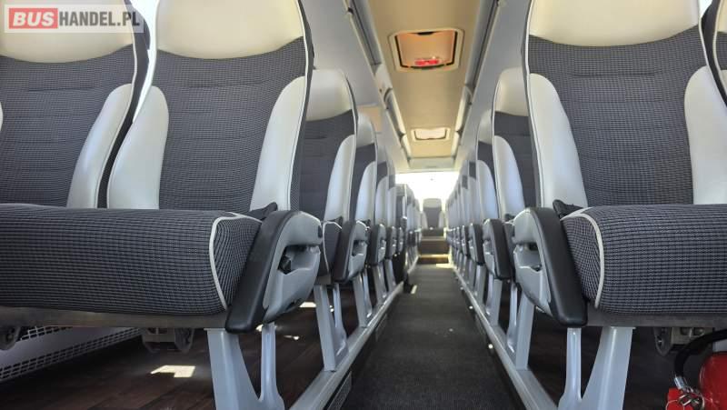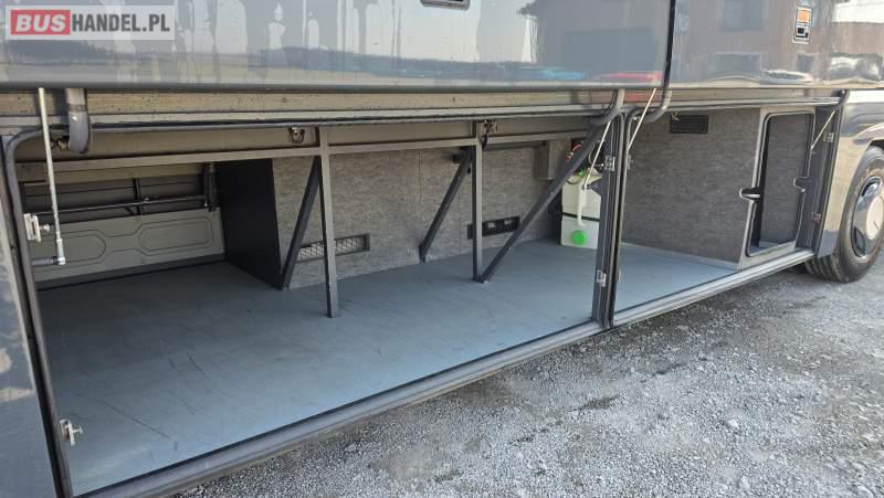 : video, WC, lodówka, caffebar, kabina sypialna, oświetlenie indywidualne, nawiewy dyszowe, siateczki, ABS, ASR, tempomat, retarder, CD, podnóżki, stoliczki, mikrofon, klimatyzacja, radio, regulacja wysokości nadwozia, centralny zamek, podwójne szyby boczne, wspomaganie kierownicy, elektryczne lusterka, fotele odchylane i rozsuwane, DVD, ogrzewanie stacjonarne, ESP