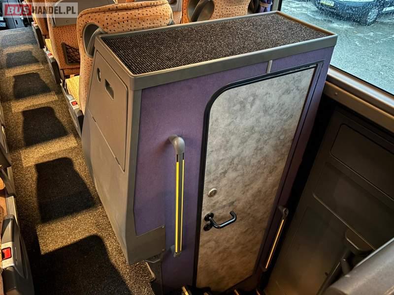 : WC, lodówka, caffebar, oświetlenie indywidualne, nawiewy dyszowe, siateczki, ABS, ASR, tempomat, retarder, nawigacja, podnóżki, stoliczki, mikrofon, klimatyzacja, radio, sejf, regulacja wysokości nadwozia, centralny zamek, podwójne szyby boczne, wspomaganie kierownicy, elektryczne lusterka, fotele odchylane i rozsuwane, DVD, ogrzewanie stacjonarne, ESP