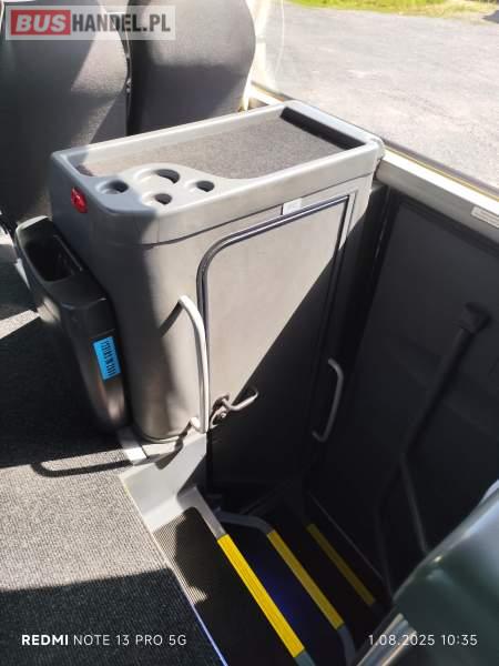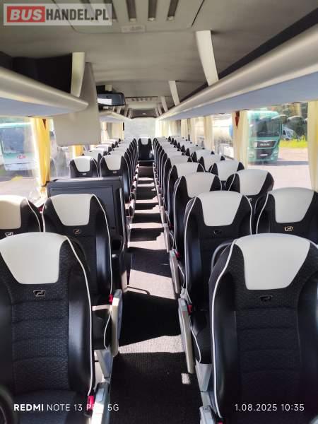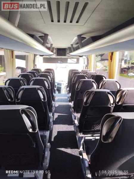: video, WC, lodówka, caffebar, kabina sypialna, oświetlenie indywidualne, nawiewy dyszowe, ABS, ASR, tempomat, retarder, CD, podnóżki, mikrofon, klimatyzacja, radio, regulacja wysokości nadwozia, podwójne szyby boczne, wspomaganie kierownicy, elektryczne lusterka, fotele odchylane i rozsuwane, DVD, ESP