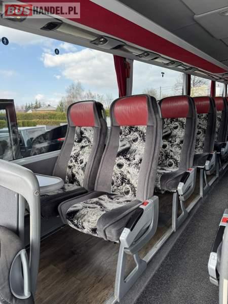 : WC, lodówka, caffebar, fotele odchylane, oświetlenie indywidualne, nawiewy dyszowe, siateczki, ABS, ASR, tempomat, retarder, CD, podnóżki, stoliczki, mikrofon, klimatyzacja, radio, kuchenka mikrofalowa, sejf, regulacja wysokości nadwozia, centralny zamek, podwójne szyby boczne, wspomaganie kierownicy, elektryczne lusterka, aluminiowe felgi, DVD, ogrzewanie stacjonarne, ESP