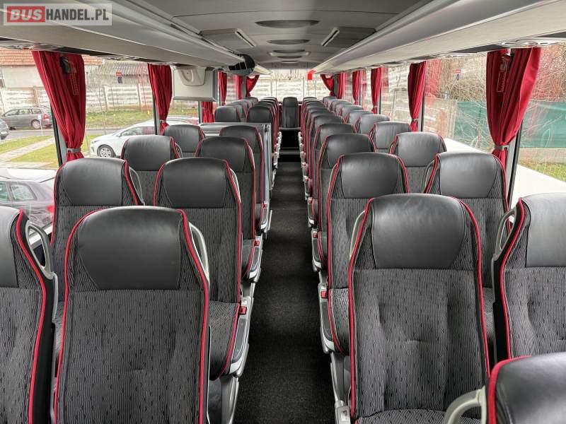 : klimatyzacja, video, WC, lodówka, caffebar, kabina sypialna, oświetlenie indywidualne, nawiewy dyszowe, fotele odchylane, podnóżki, stoliczki, siateczki, ABS, ASR, tempomat, retarder, telefon, nawigacja, CD, mikrofon, fotele odchylane i rozsuwane, wyświetlacz matrix, rampa dla inwalidów, sejf, regulacja wysokości nadwozia, centralny zamek, podwójne szyby boczne, wspomaganie kierownicy, aluminiowe felgi, elektryczne lusterka, ogrzewanie stacjonarne, DVD, hak holowniczy, ESP