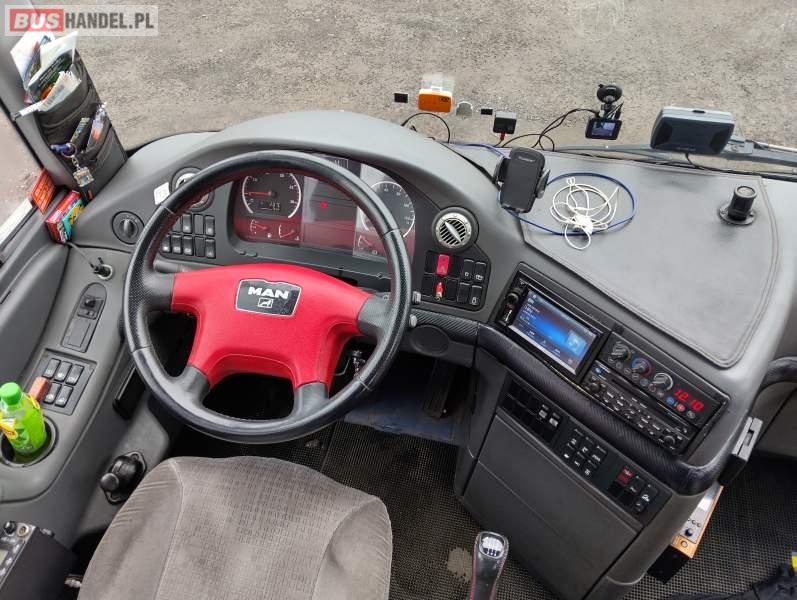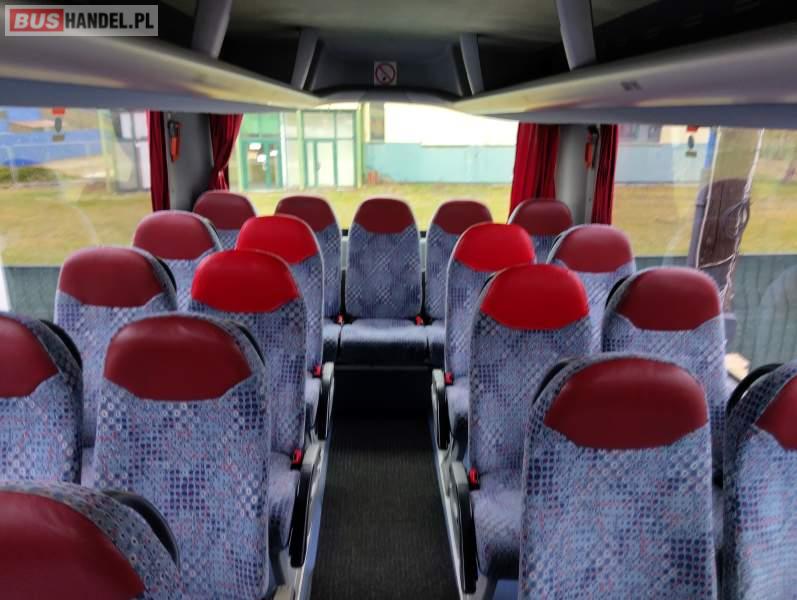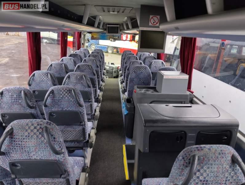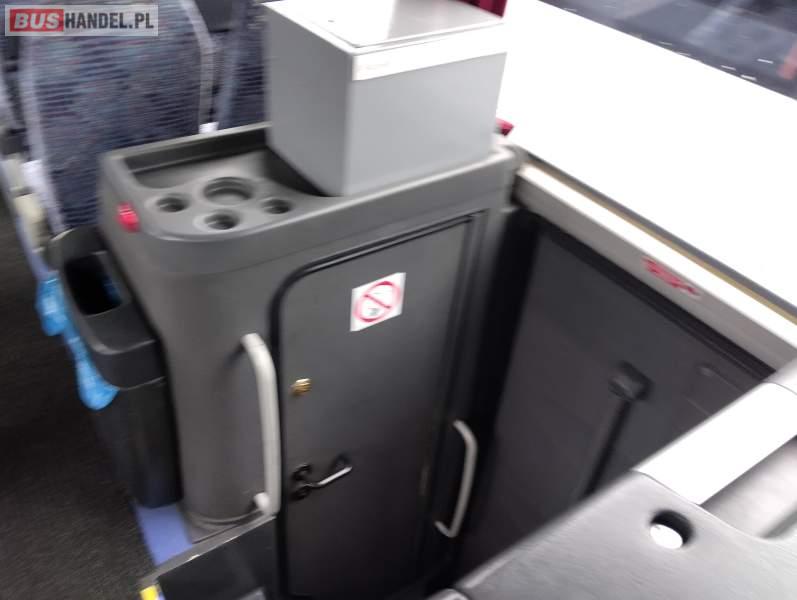 : WC, lodówka, caffebar, kabina sypialna, oświetlenie indywidualne, nawiewy dyszowe, siateczki, ABS, ASR, tempomat, retarder, CD, podnóżki, stoliczki, mikrofon, klimatyzacja, sejf, regulacja wysokości nadwozia, podwójne szyby boczne, elektryczne lusterka, fotele odchylane i rozsuwane, DVD, ogrzewanie stacjonarne, ESP